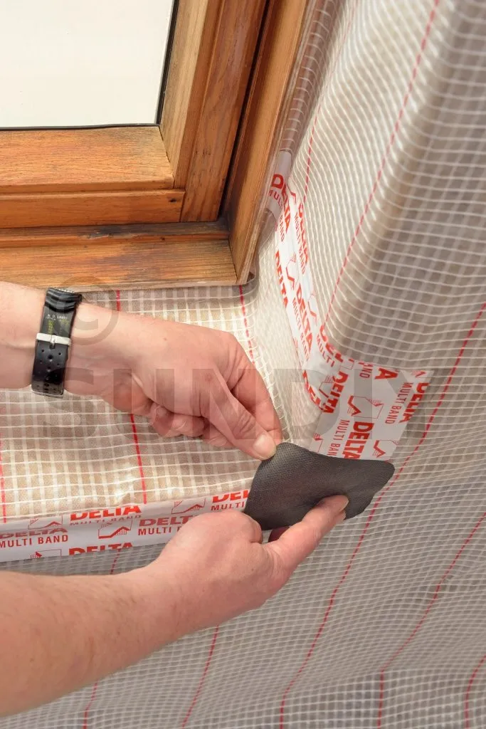 2. DELTA®-FLEXX BAND erfordert bei der Verwendung von DELTA®-FLEXX BAND als Putzuntergrund die Verwendung von DELTA®-PREN Primer, der das Geotextil anfeuchtet. Alle 10 cm versetzt mechanisch befestigen.