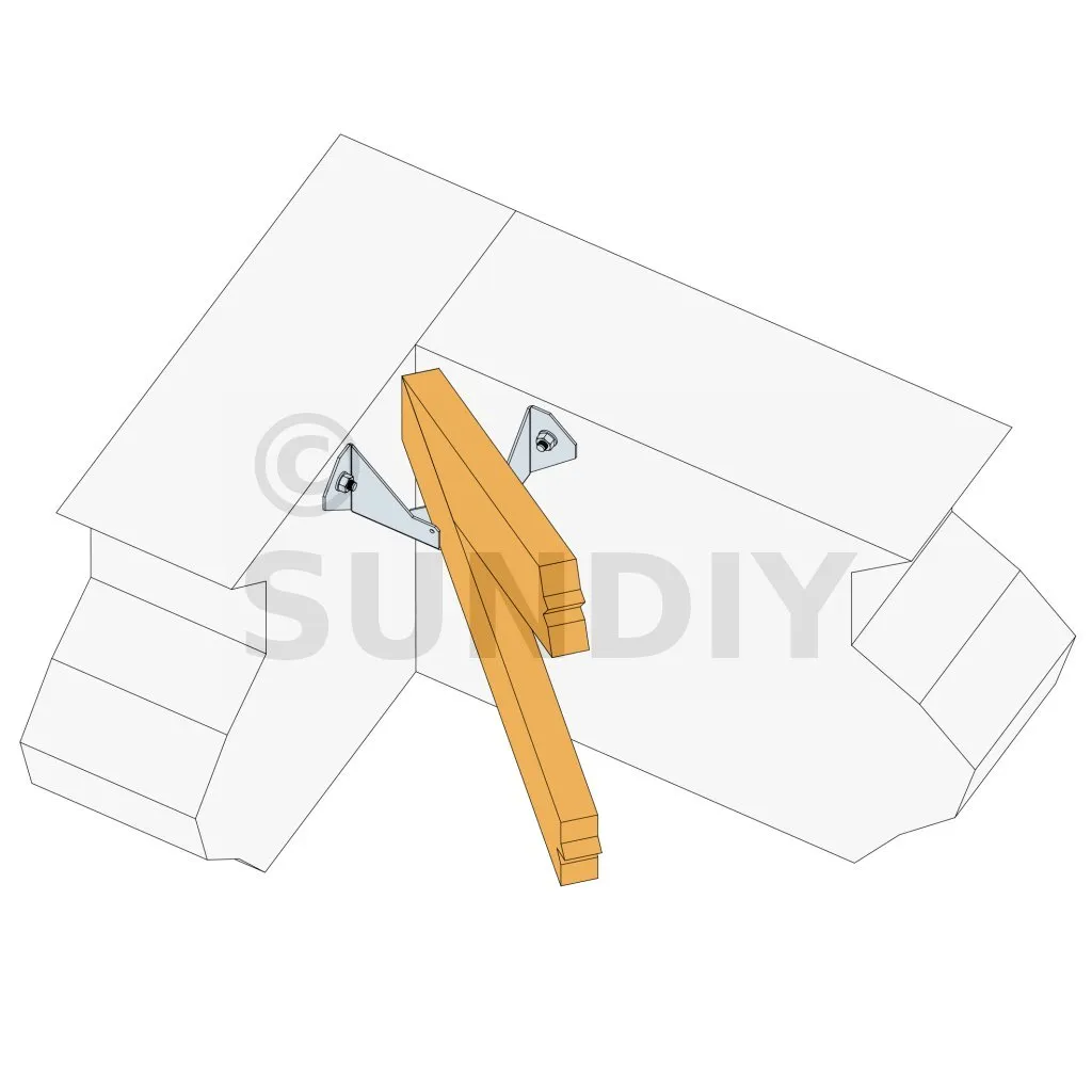 Dieser Balkenschuh ermöglicht die Aufnahme von Dachbindern in gemauerten Ecken mit einem Winkel von 90°. Er ist in der Breite wahlweise zwischen 76 und 150 mm faltbar und in der Breite 38 mm erhältlich.