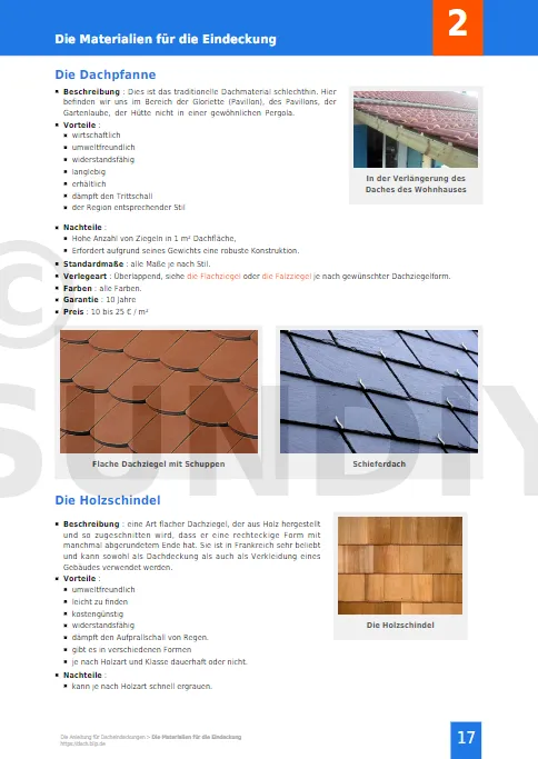 Die Anleitung zur Auswahl und Verlegung von Dacheindeckungen, zum HERUNTERLADEN