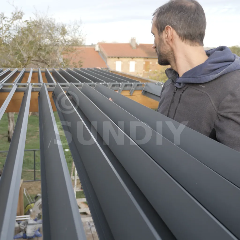 Dank ihres innovativen Designs sind diese Aluminiumlamellen die ideale Lösung für alle Ihre Anforderungen an die Abdichtung: Essen im Freien bei Regen, Schutz von Möbeln, Schutz einer Außenküche usw.