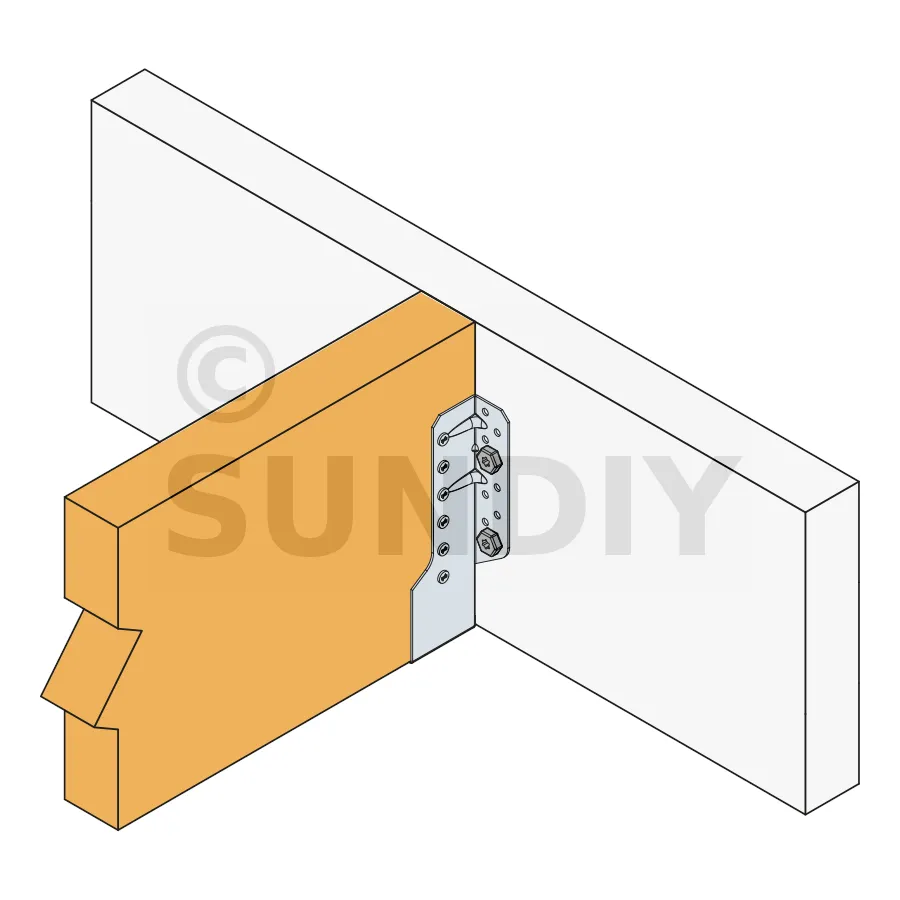 2. Präsentieren Sie den Balkenschuh und befestigen Sie die Schenkel auf jeder Seite vor,