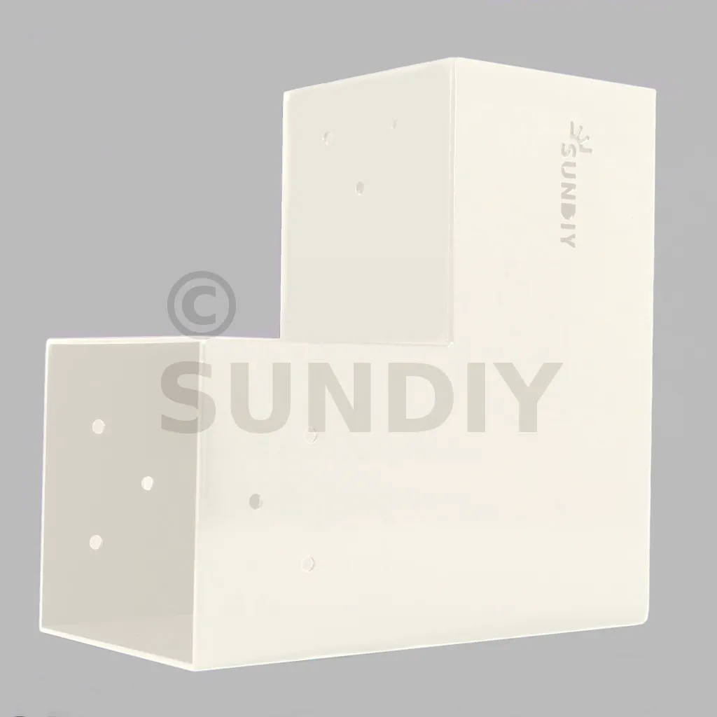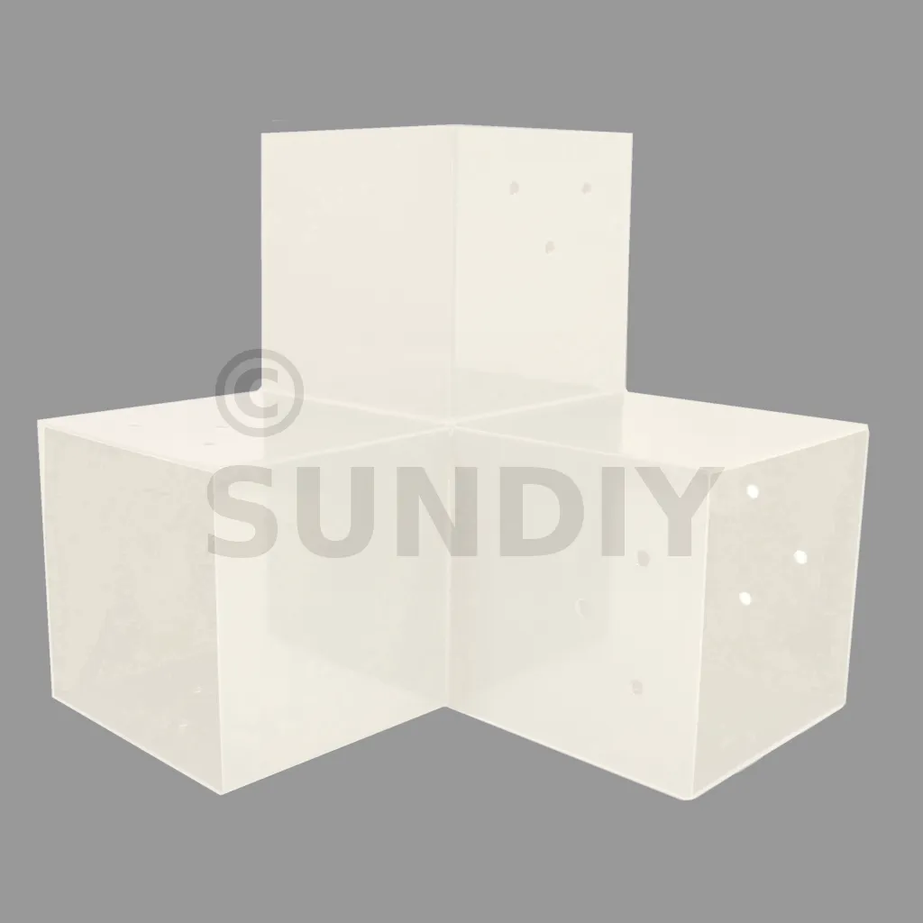 Es wird in einer Außenecke verwendet. Mit diesem Verbinder können Sie einen 90 x 90 mm großen Balken senkrecht mit einem anderen Balken oder mit einem 90 x 90 mm großen vertikalen Pfosten verbinden.