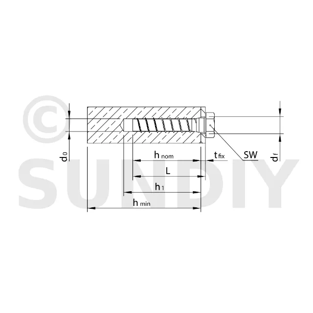 - Kann demontiert und wiederverwendet werden. Diese Betonschraube kann ohne Drehmomentschlüssel randnah montiert werden.