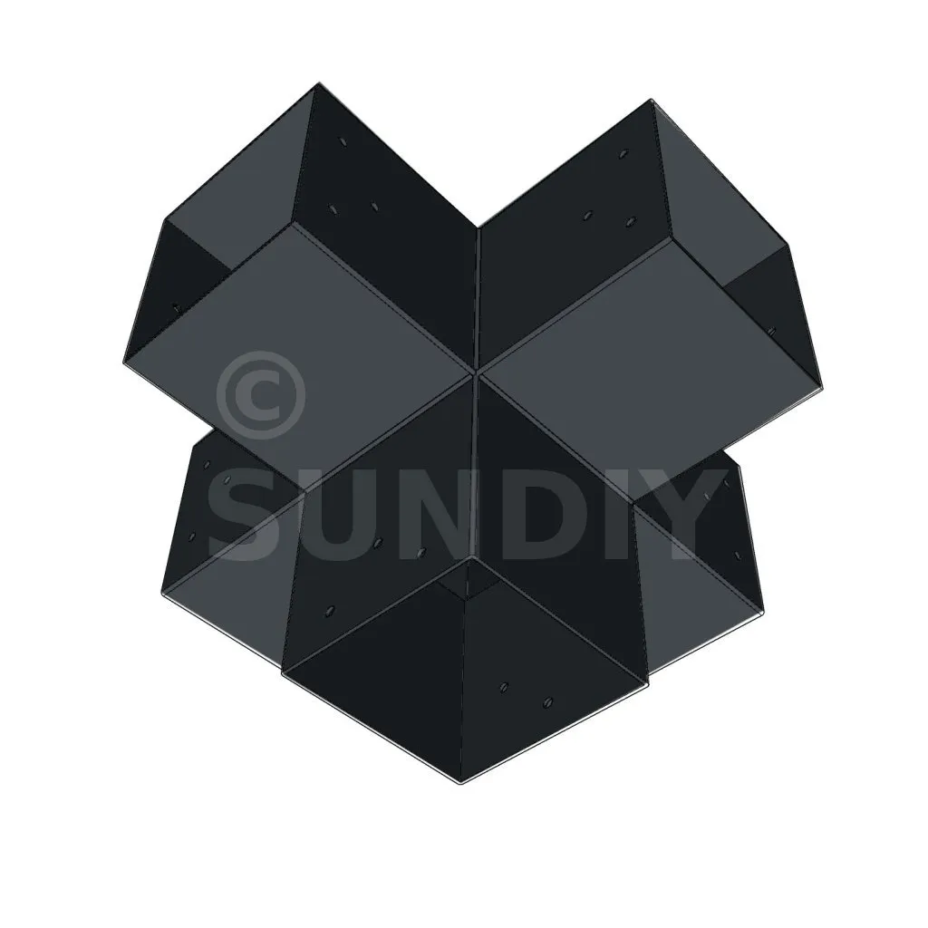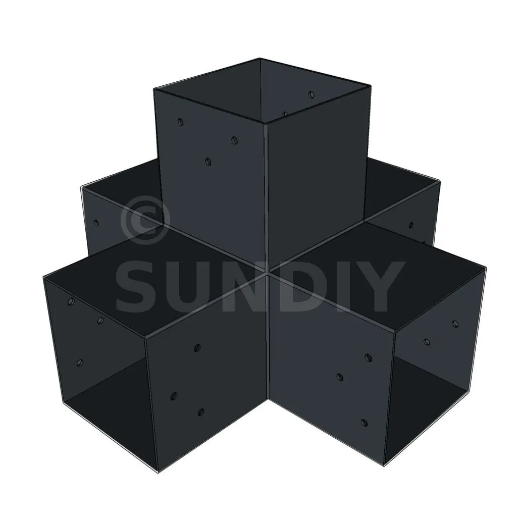 Es ist möglich, zwei 120 x 120 mm große Aussparungen senkrecht zu einer anderen 120 x 120 mm großen Aussparung aufzustellen, die insgesamt von einem 120 x 120 mm großen vertikalen Ausgießer unterstützt wird.