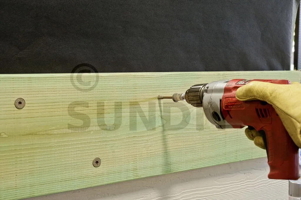 - SDWS-Schrauben lassen sich einfach mit einem langsamen Schraubendreher (Drehzahl kleiner oder gleich 2500 U/min) und einem T40-Bit (in jeder Schraubenschachtel enthalten) installieren.
