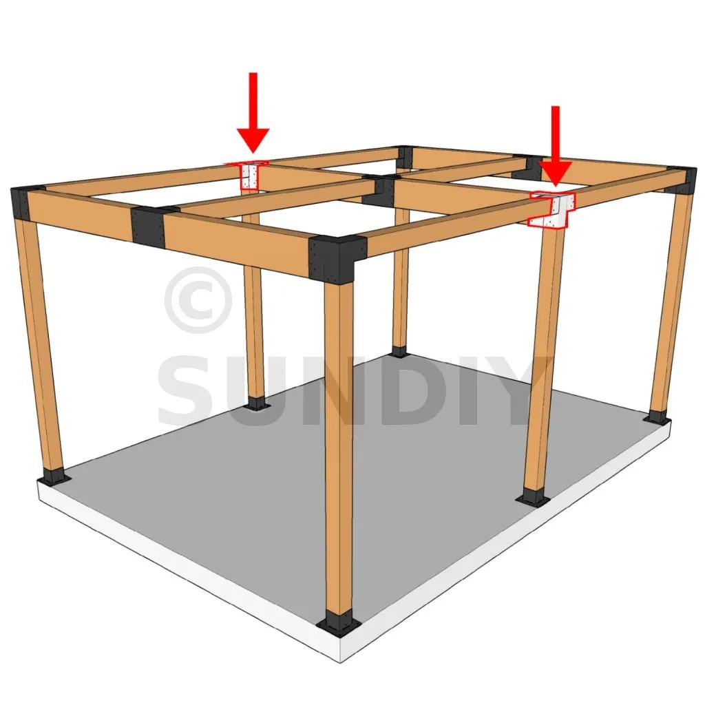 Es ermöglicht die senkrechte Verbindung von zwei 120 x 120 mm großen Balken zu einem großen 240 x 120 mm großen Balken, wobei das Ganze von einem 120 x 120 mm großen vertikalen Pfosten getragen wird.