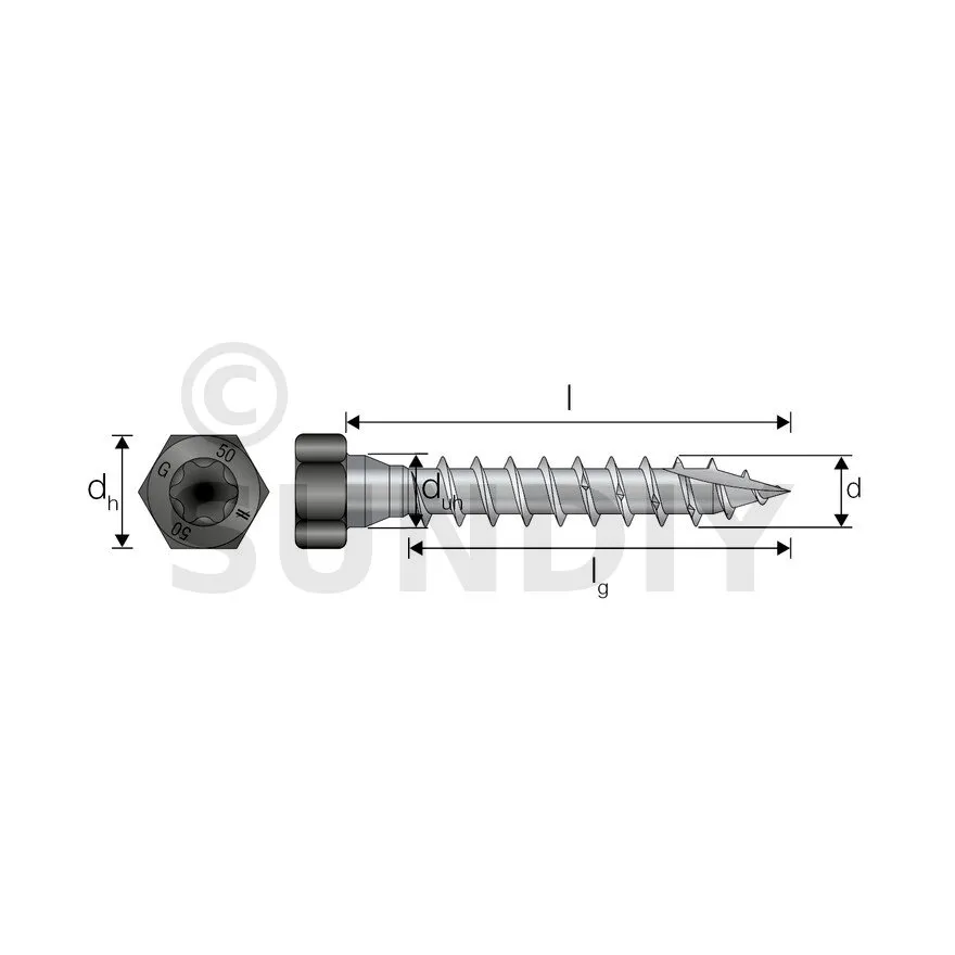 - Sechskantkopf: perfekter Halt der Stahlplatte auf Holz dank breitem Kopf,