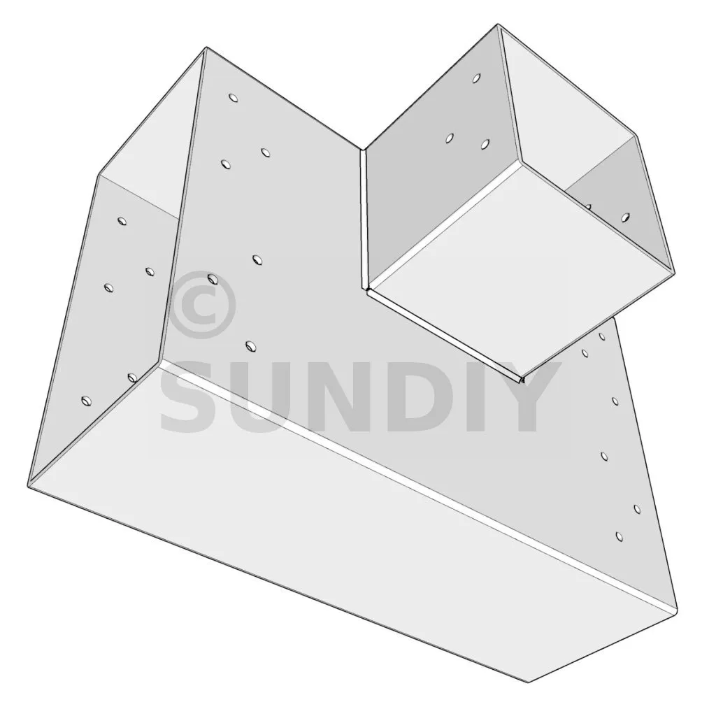 Es wird verwendet, um einen 120 x 120 mm großen Balken senkrecht mit einem großen 240 x 120 mm großen Balken zu verbinden, OHNE dass er von einem vertikalen Pfosten getragen wird.