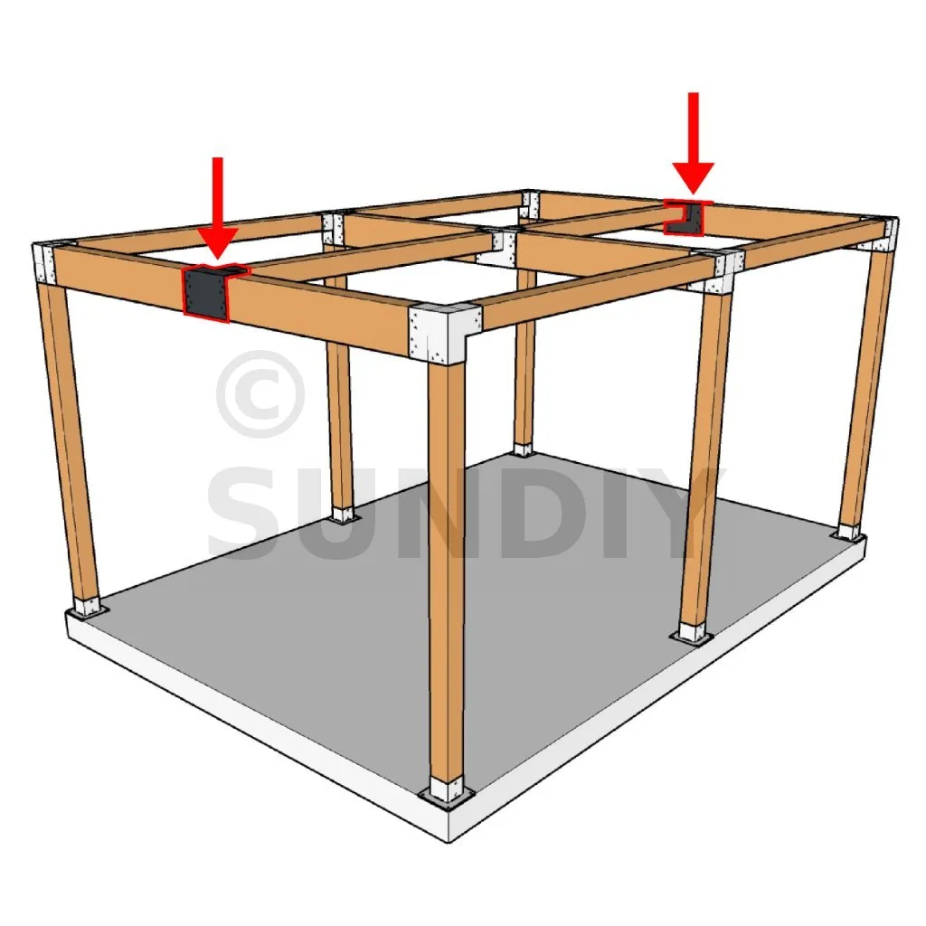 Es wird verwendet, um einen 120 x 120 mm großen Balken senkrecht mit einem großen 240 x 120 mm großen Balken zu verbinden, OHNE dass er von einem vertikalen Pfosten getragen wird.