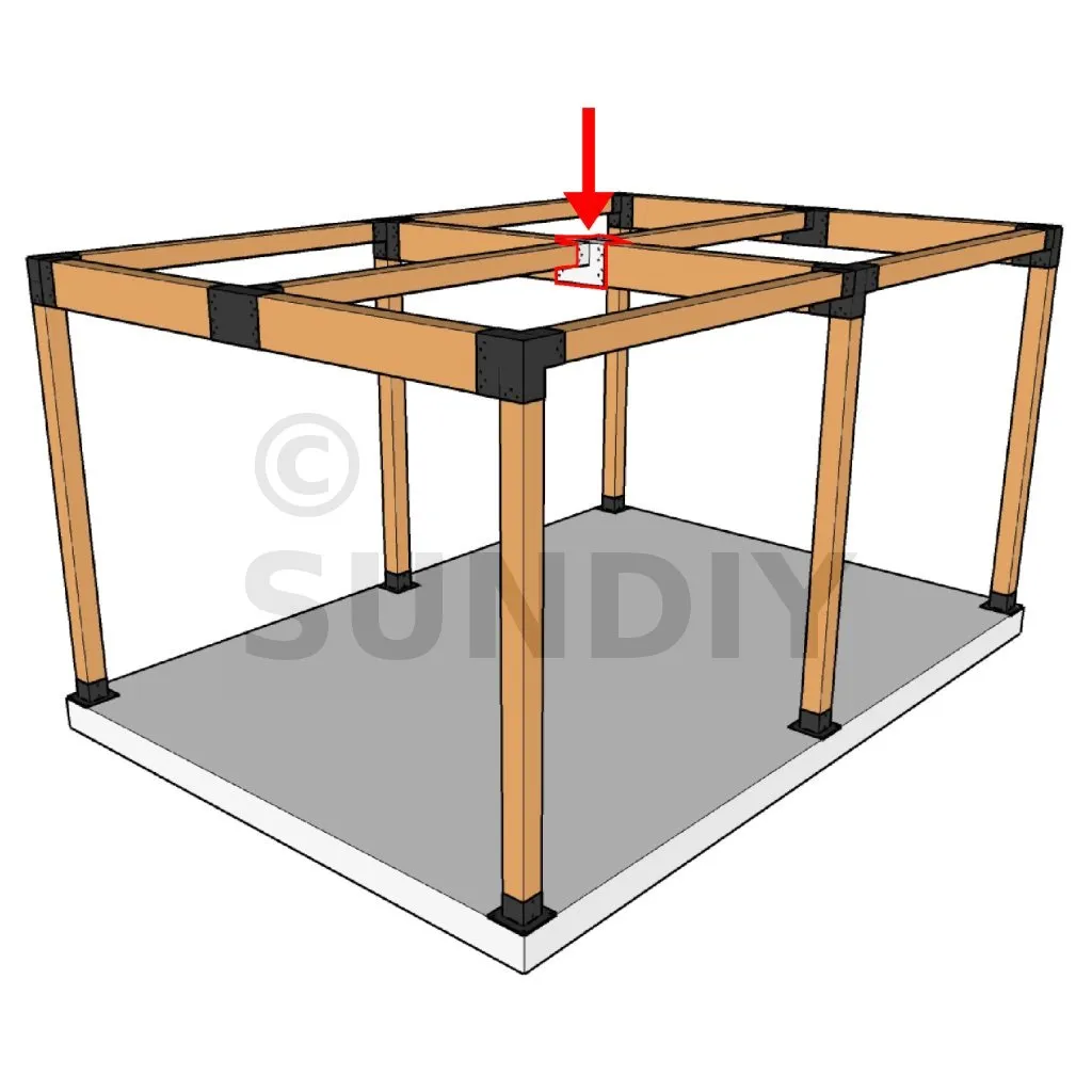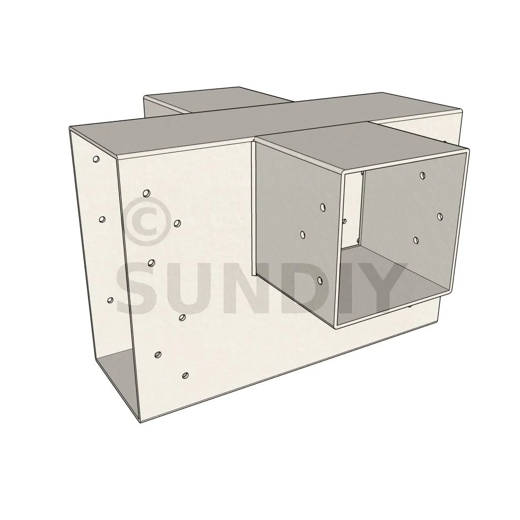 Es ermöglicht die senkrechte Verbindung von zwei 120 x 120 mm großen Balken zu einem großen 240 x 120 mm großen Balken, OHNE dass sie von einem vertikalen Pfosten getragen werden.