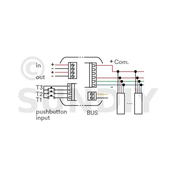 - Es ist möglich, Slave-Geräte der BUS-Version (maximal 40) zu kombinieren, um die Funktionen des Masters zu wiederholen