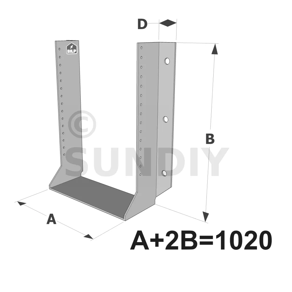 Große Balkenschuhe, Breite (A) : 201 bis 270mm - Höhe (B) : 375 bis 409.5mm - Réf. GSEXL1020/4X