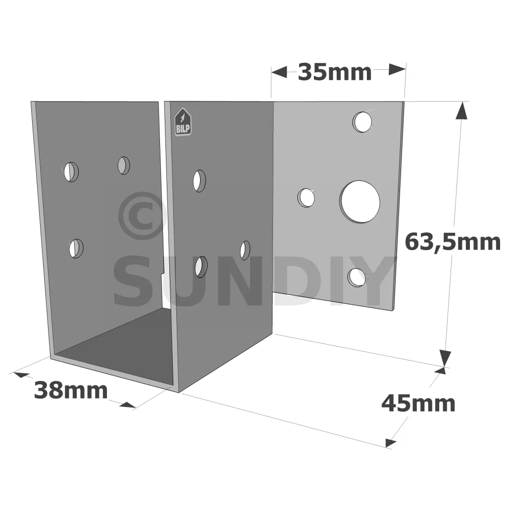 Balkenschuhe mit außenliegenden Schenkeln, MF-Sortiment, für MF-Mini-Pfettenanker - Réf. MF165/38/1.5