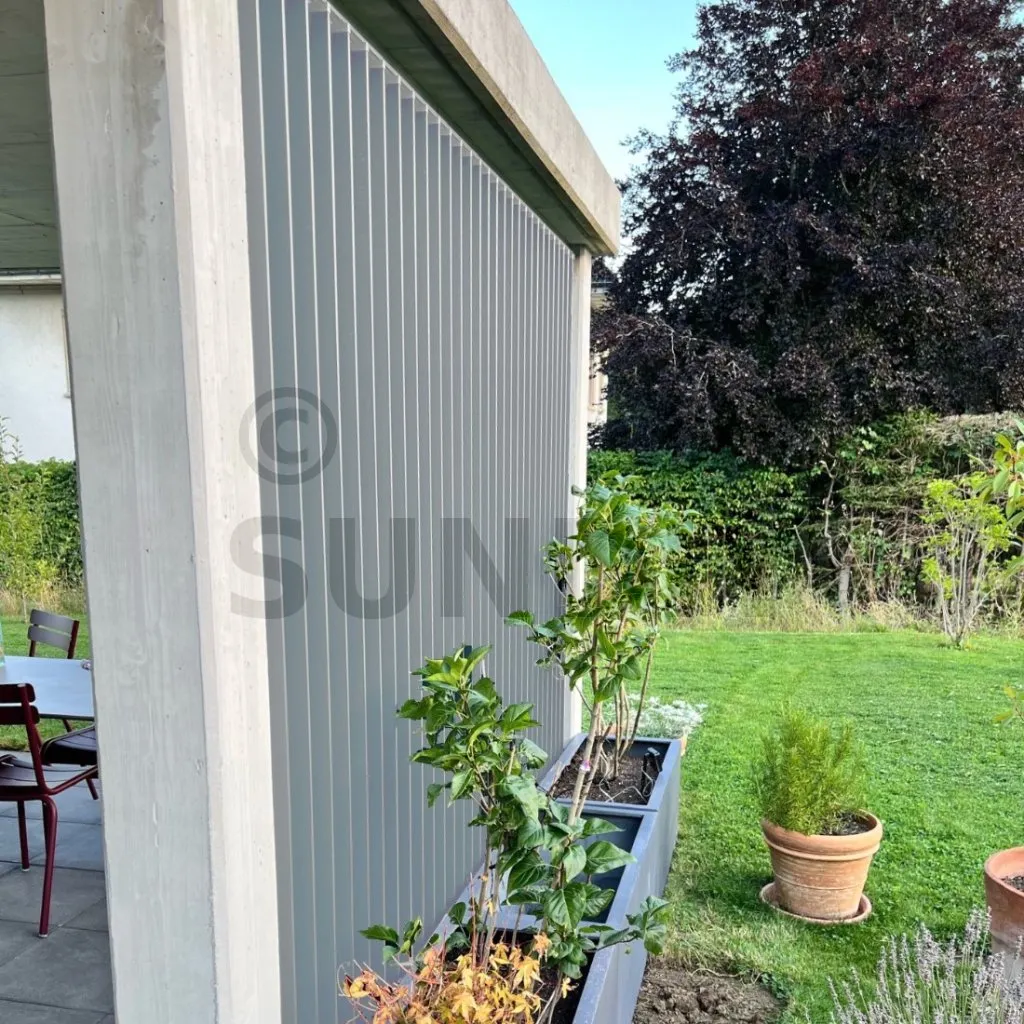 Dank ihres innovativen Designs sind diese Aluminiumlamellen die ideale Lösung für alle Ihre Anforderungen an die Abdichtung: Essen im Freien bei Regen, Schutz von Möbeln, Schutz einer Außenküche usw.