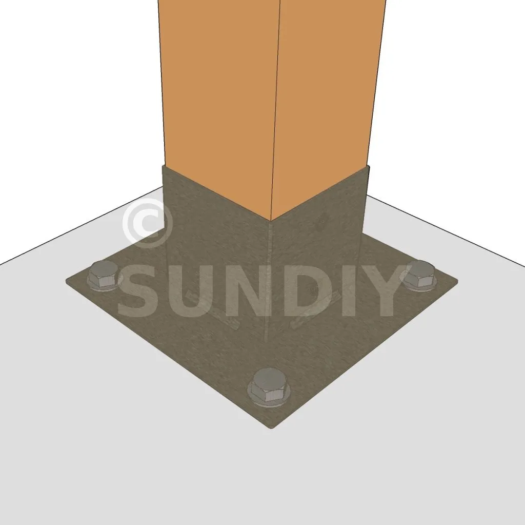 Dadurch können die Pfosten auf einer Platte oder Betonplatte befestigt werden.