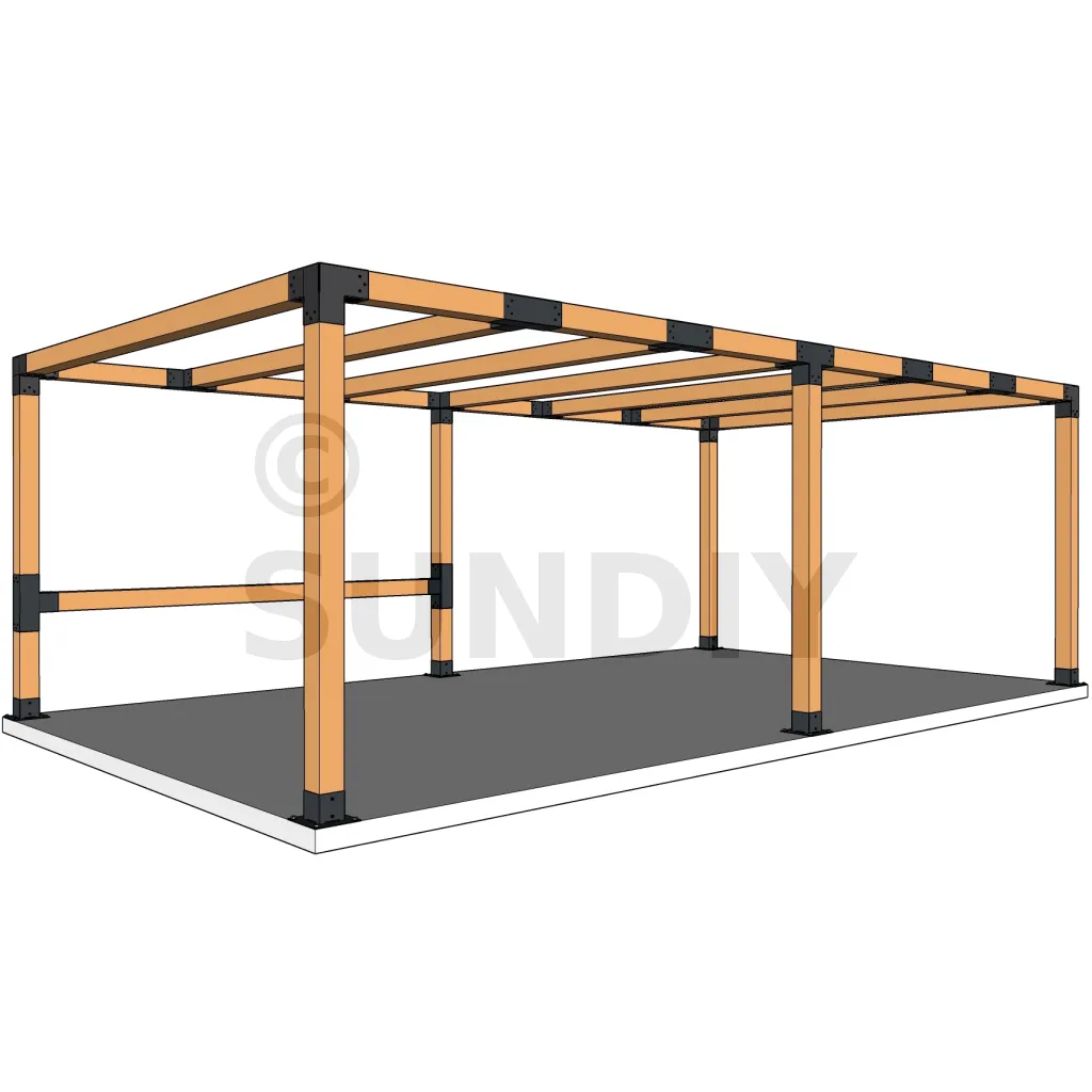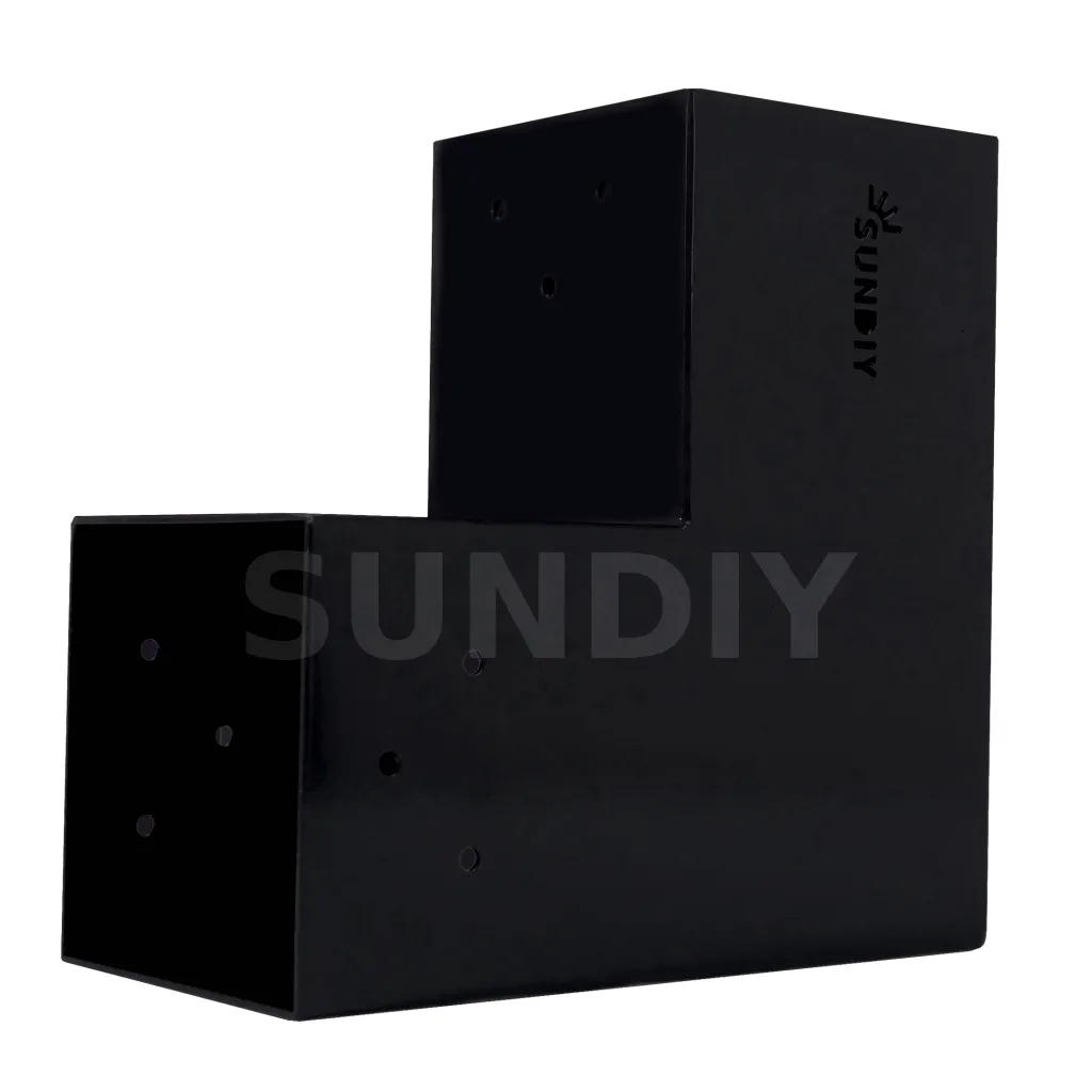 Es wird in einer Außenecke verwendet. Mit diesem Verbinder können Sie einen großen 120 x 120 mm großen Balken senkrecht mit einem 120 x 120 mm großen Balken verbinden, wobei das Ganze von einem 120 x 120 mm großen vertikalen Pfosten getragen wird.