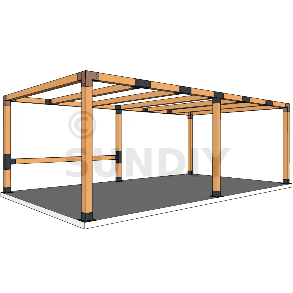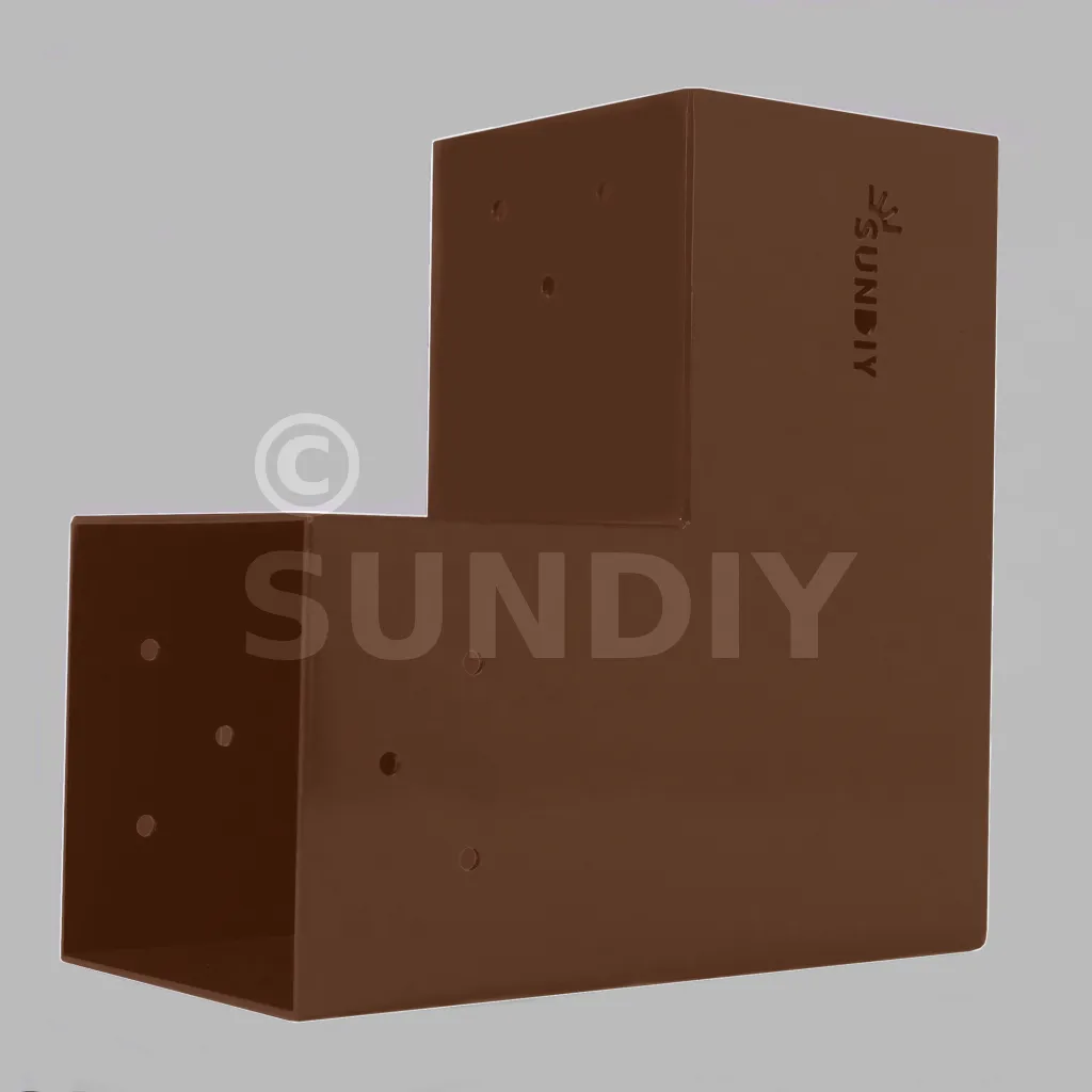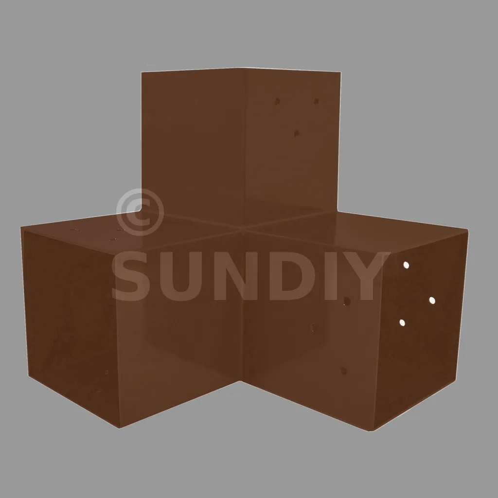 Es wird in einer Außenecke verwendet. Mit diesem Verbinder können Sie einen großen 120 x 120 mm großen Balken senkrecht mit einem 120 x 120 mm großen Balken verbinden, wobei das Ganze von einem 120 x 120 mm großen vertikalen Pfosten getragen wird.