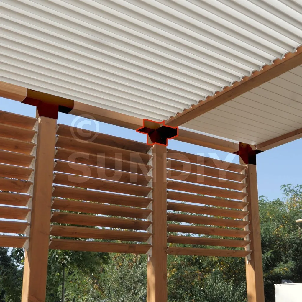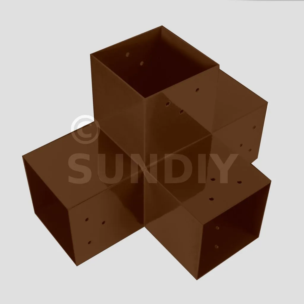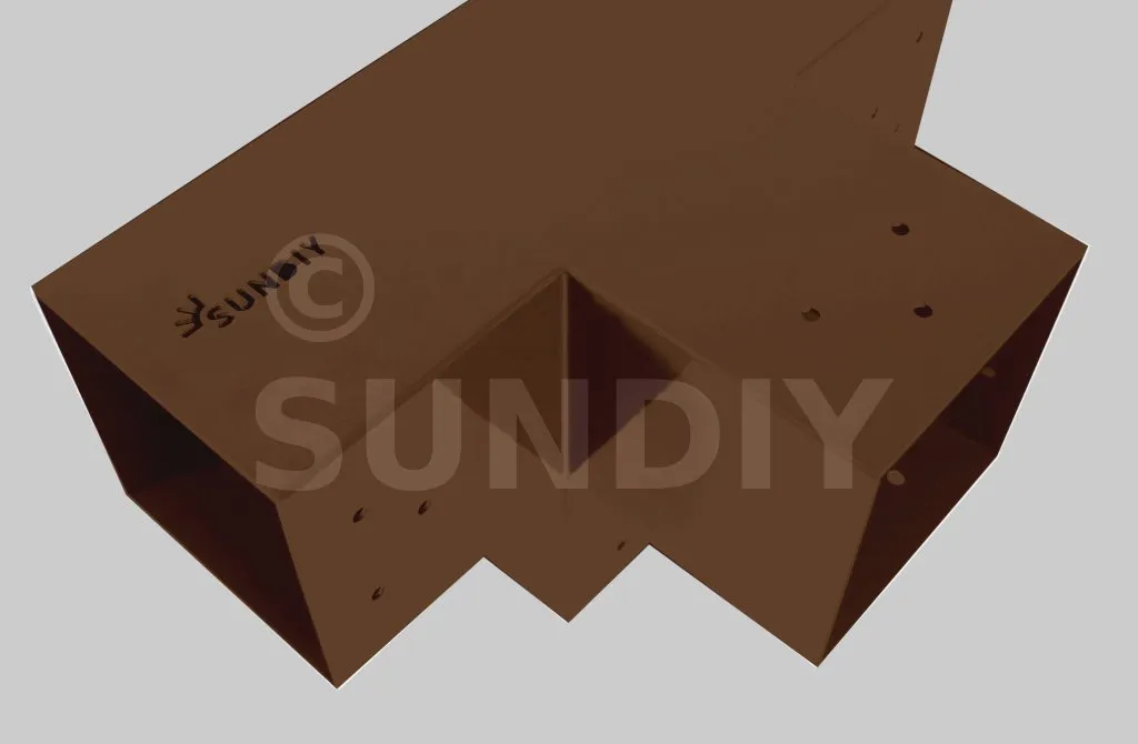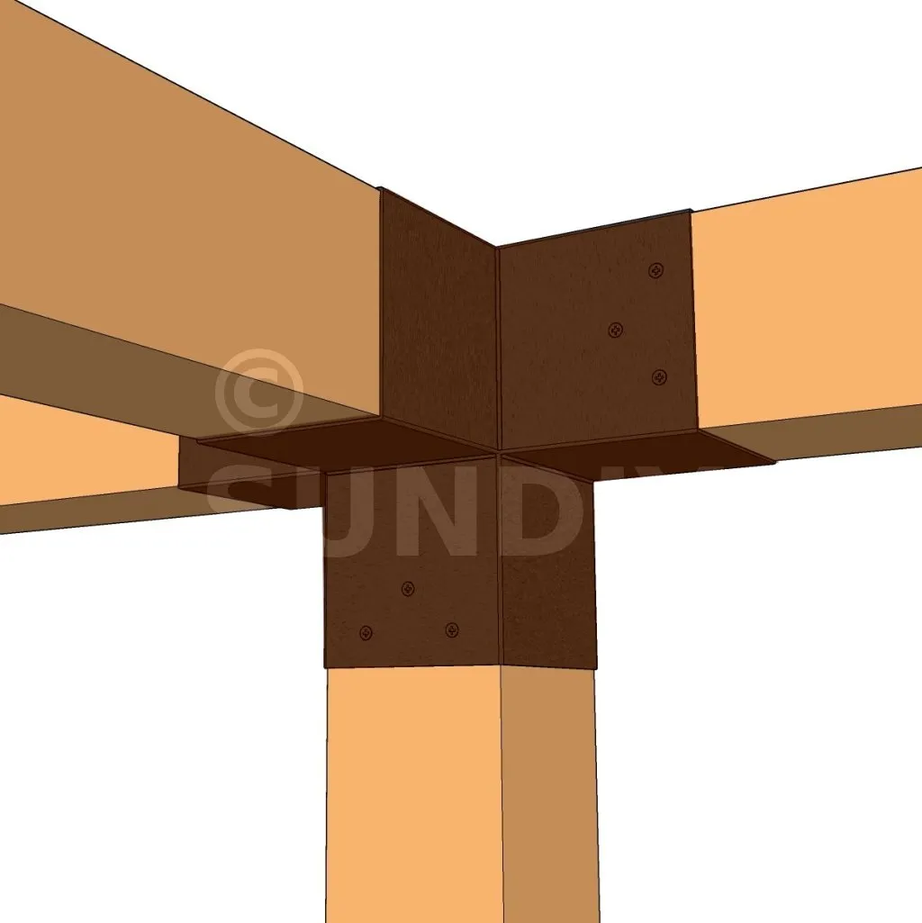 Damit kann eine 120x120mm-Stütze senkrecht zu einem 120x120mm-Chevron angebracht werden, die insgesamt von einem 120x120mm-Vertikaltopf unterstützt wird.