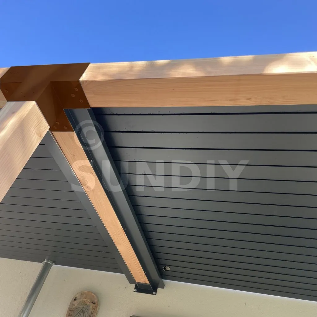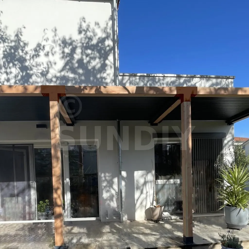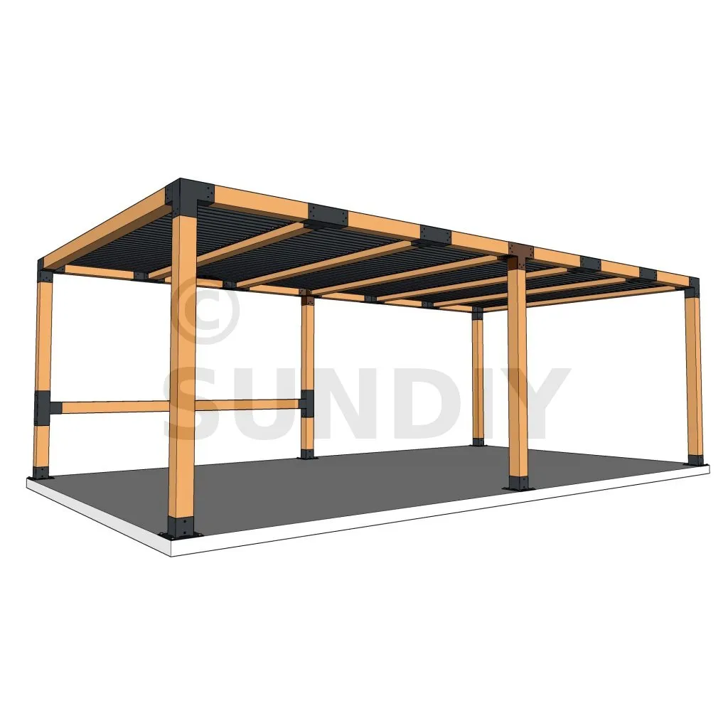 Damit kann eine 120x120mm-Stütze senkrecht zu einem 120x120mm-Chevron angebracht werden, die insgesamt von einem 120x120mm-Vertikaltopf unterstützt wird.