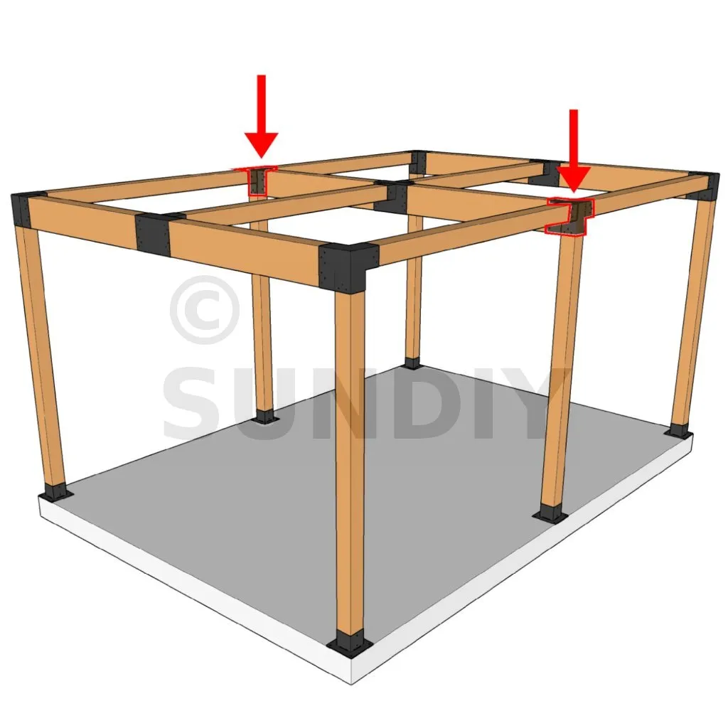 Es ermöglicht die senkrechte Verbindung von zwei 120 x 120 mm großen Balken zu einem großen 240 x 120 mm großen Balken, wobei das Ganze von einem 120 x 120 mm großen vertikalen Pfosten getragen wird.
