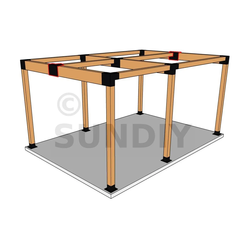 Es wird verwendet, um einen großen Balken von 240 x 120 mm senkrecht mit einem Balken von 120 x 120 mm zu verbinden, wobei das Ganze von einem vertikalen Pfosten von 120 x 120 mm getragen wird.