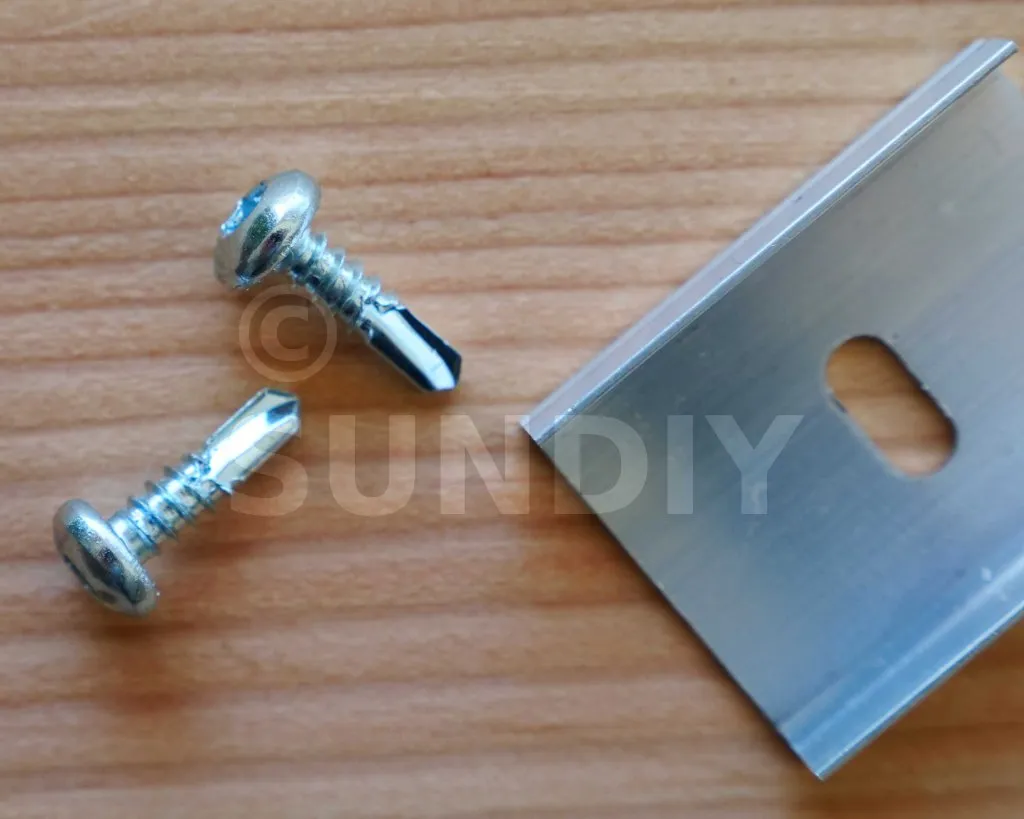 Die Mechanismen des SUNDIY-Systems werden mithilfe von Befestigungsklammern*, die vorher eingeschraubt werden müssen, sicher an der Struktur (ob Holz, Aluminium, Beton usw.) befestigt. Die hier angebotenen Schrauben sind speziell darauf ausgelegt, eine effektive Befestigung in Stahl zu gewährleisten.