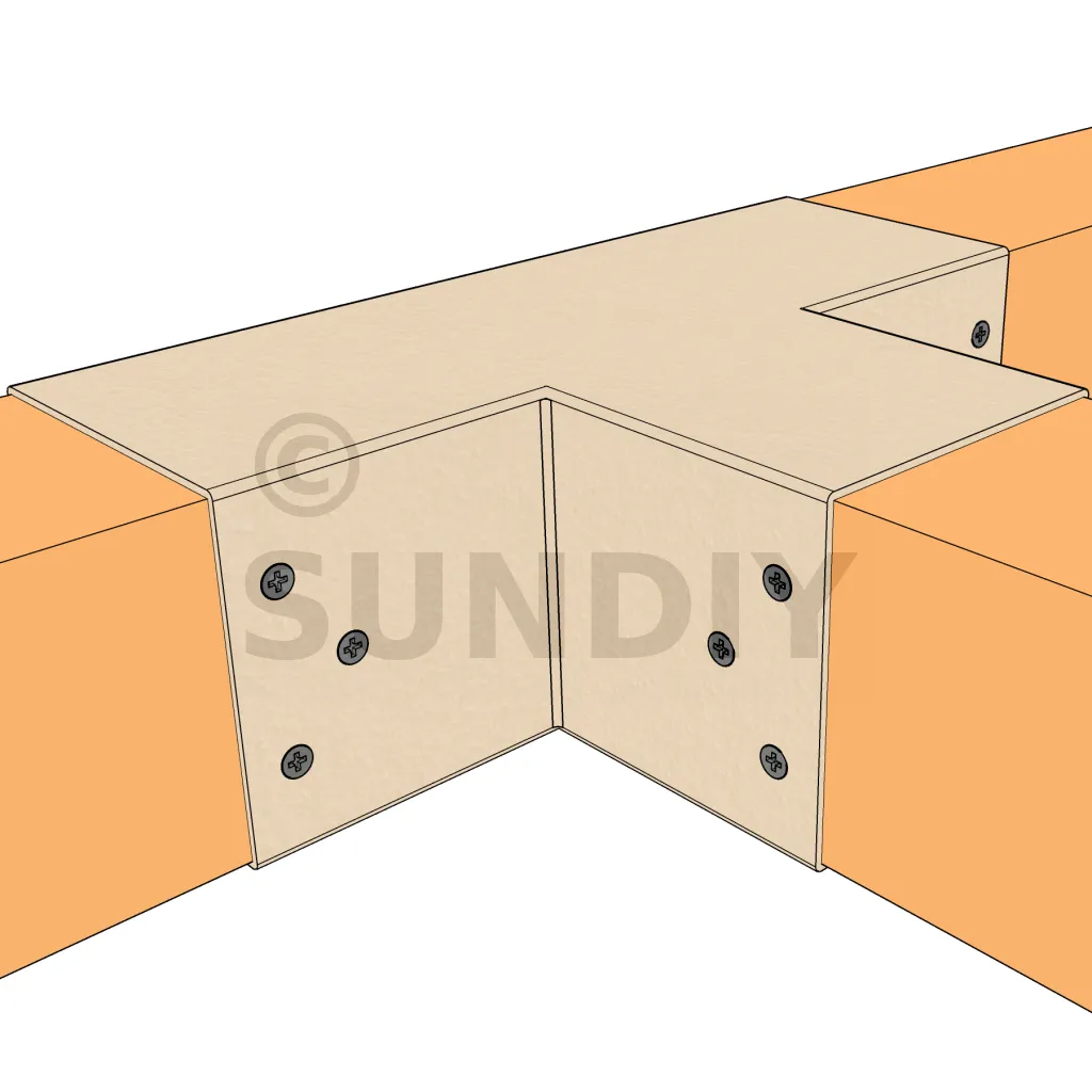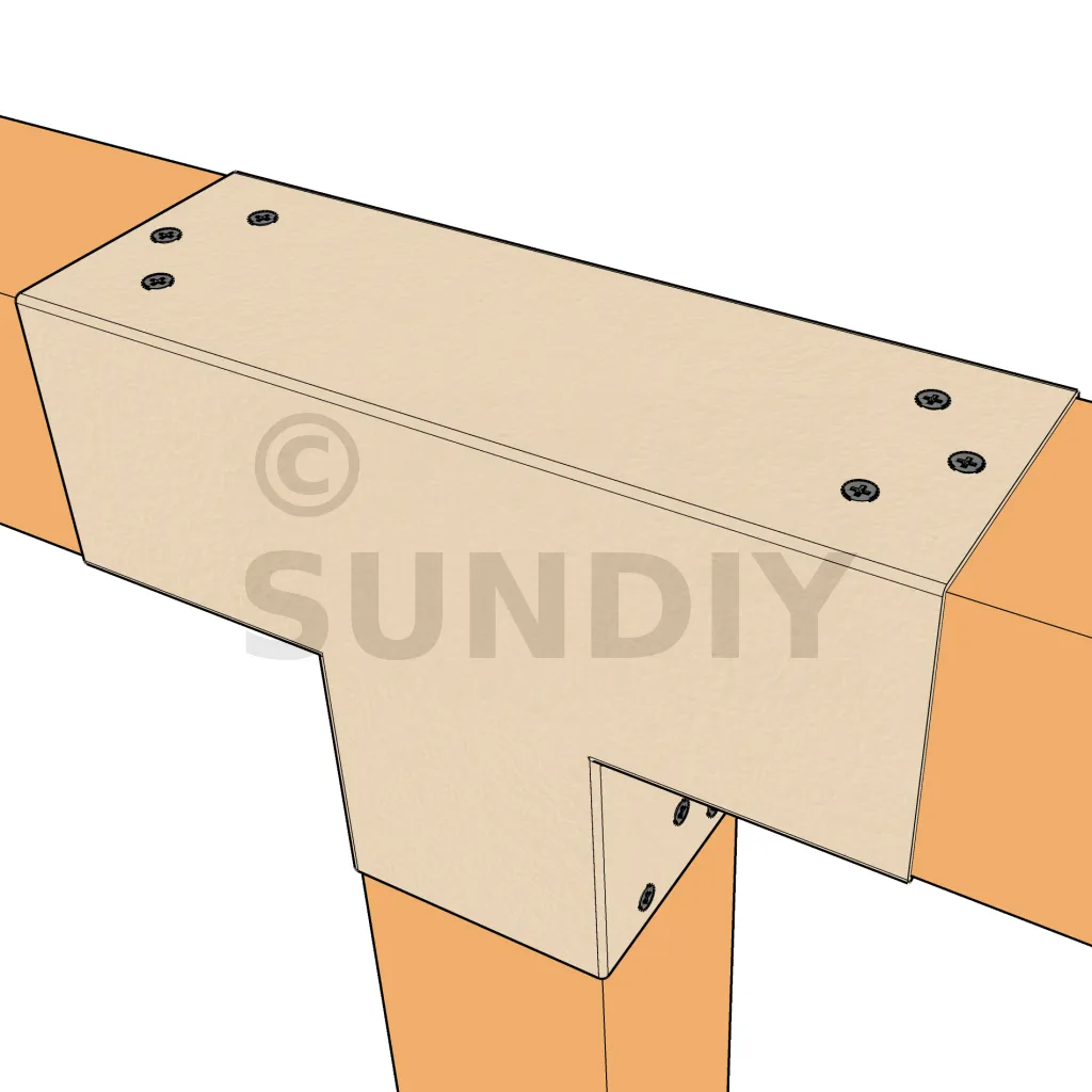 Es wird verwendet, um einen 90x90-mm-Träger senkrecht mit einem anderen 90x90-mm-Träger zu verbinden, OHNE dass er von einem vertikalen Pfosten getragen wird.