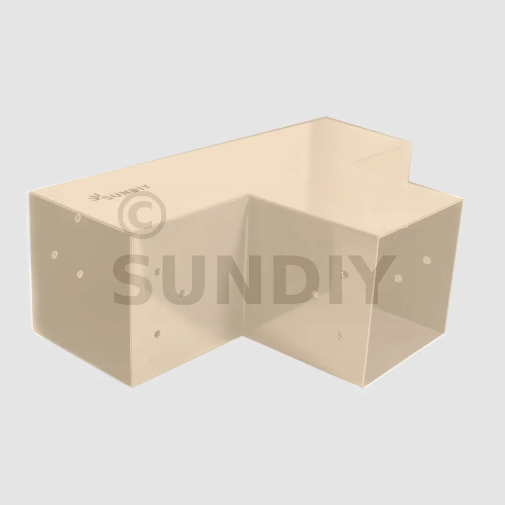 Dies ermöglicht auch den Anschluss einer langen 120x120mm-Steckdose an ein 120x120mm-Zwischengefäß.