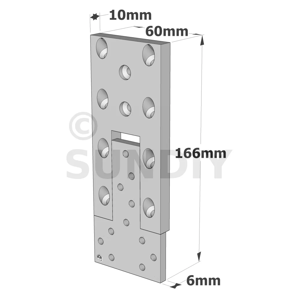 2. Führen Sie die Senkung mit einem ∅16-Fräser und einer ∅30-Scheibe bis zu einer Tiefe von 10 mm durch. Um Bewegungen während der Bearbeitung zu vermeiden, können Sie die Schablone mithilfe der dafür vorgesehenen Bohrung auf den Balken schrauben.