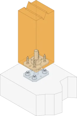 1. Legen Sie die obere Platte des Pfostenfußes unter den Pfosten.