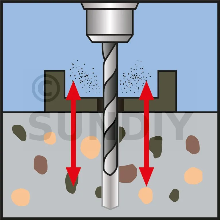 - Bohren Sie immer tiefer als die Länge der Schraube.