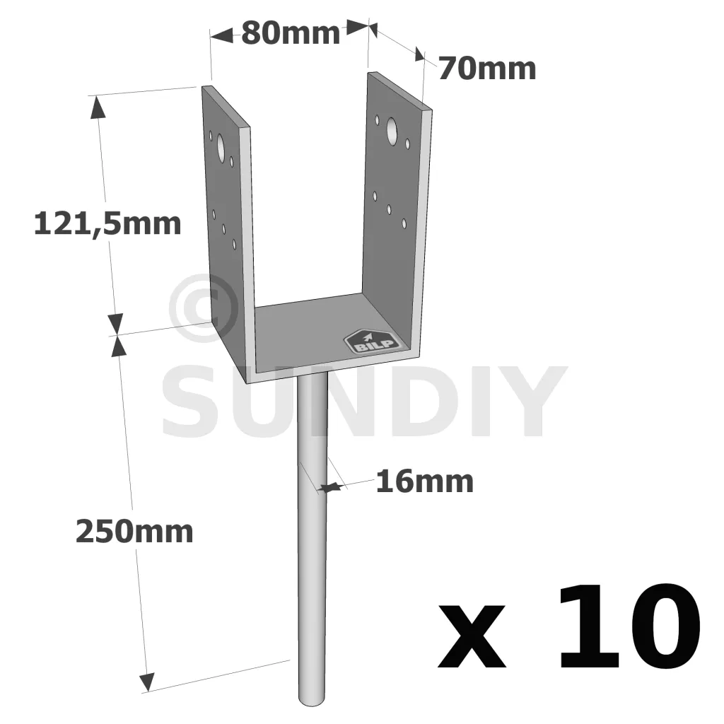 U-Pfostenträger zum Einbetonieren - Réf. PPD80/70G_10