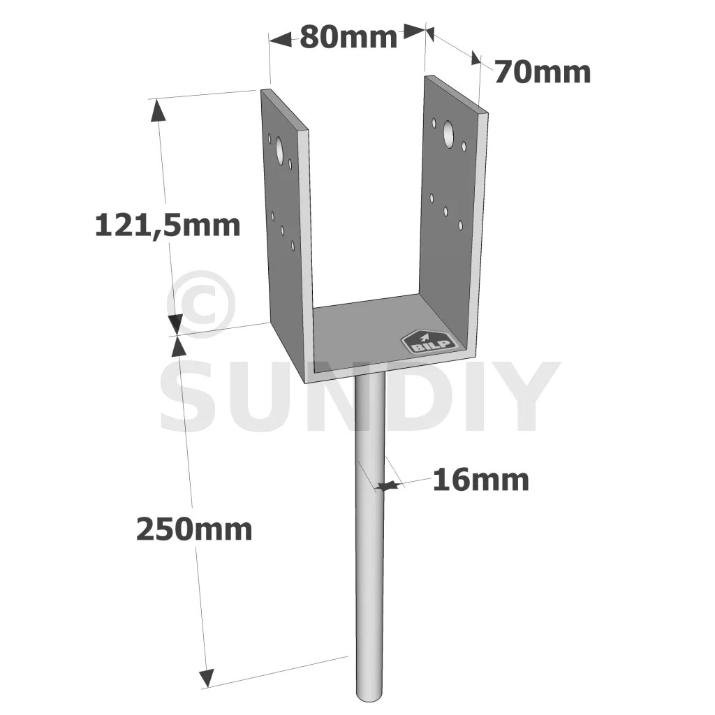 U-Pfostenträger zum Einbetonieren - Réf. PPD80/70G