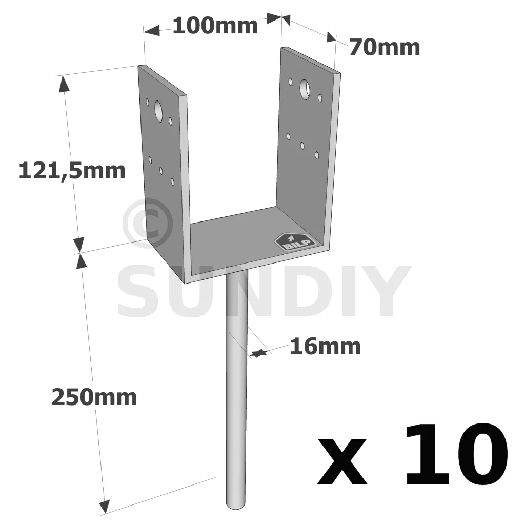 U-Pfostenträger zum Einbetonieren - Réf. PPD100/70G_10