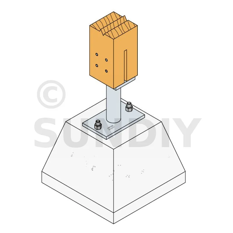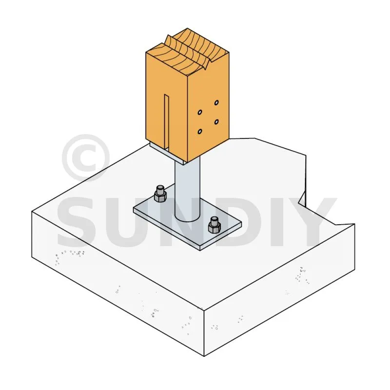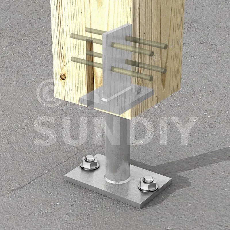 - Holzverbindung auf starrem TrägerAuf Pfosten : 4Ø8 (STD-Stabdübel) ; auf Beton : 2Ø12 (WA-Dübel ; Gewindestange)