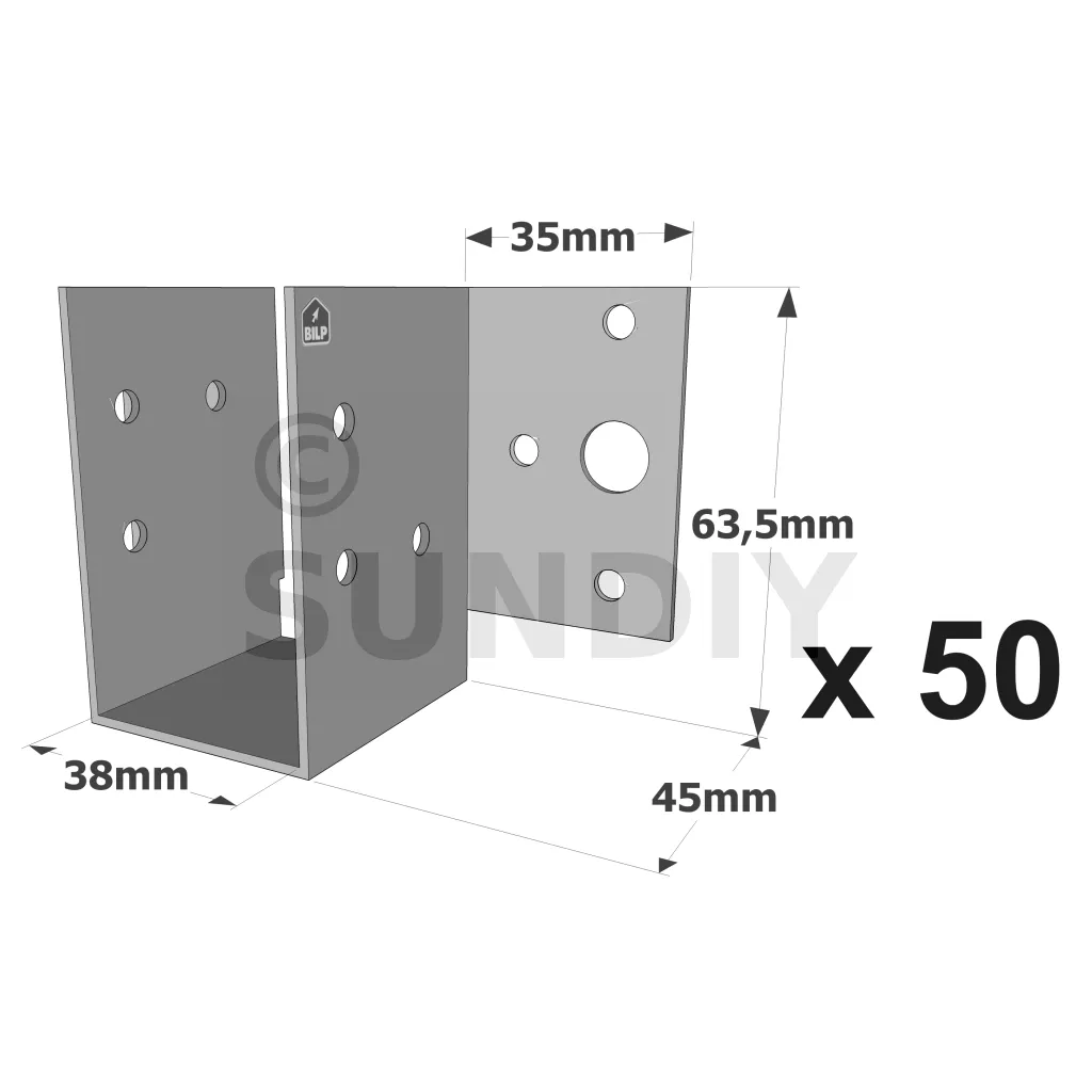 Balkenschuhe mit außenliegenden Schenkeln, MF-Sortiment, für MF-Mini-Pfettenanker - Réf. MF165/38/1.5_50