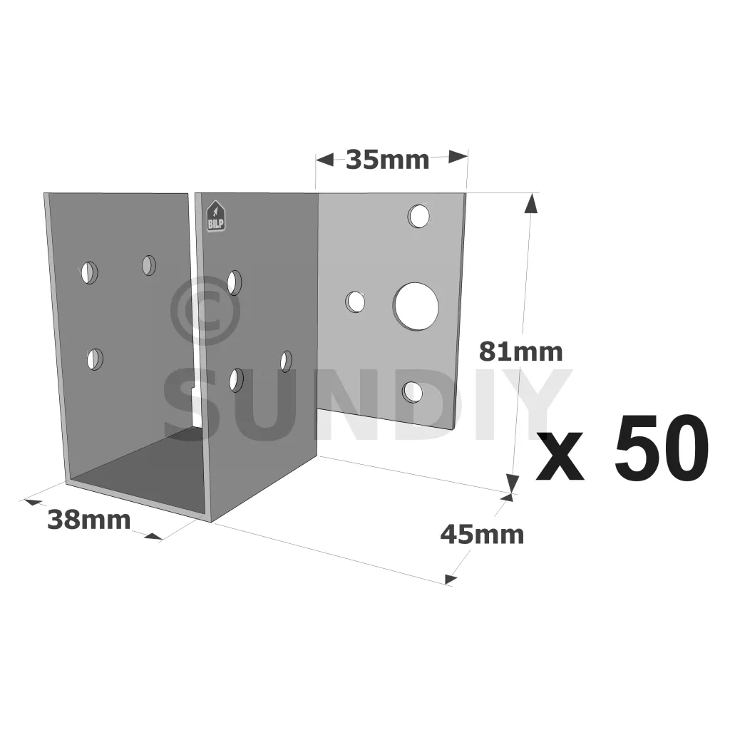 Balkenschuhe mit außenliegenden Schenkeln, MF-Sortiment, für MF-Mini-Pfettenanker - Réf. MF200/38/1.5_50