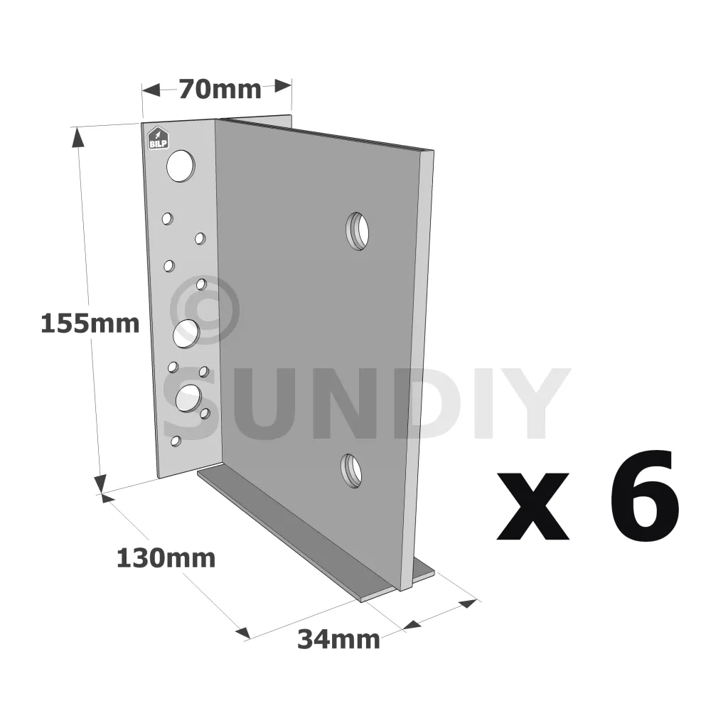 | Breite | Höhe | Pfostenbreite | Höhe | Tiefe | Breite (C) | Breite (D) | Dicke (t1) | Dicke (t2) | Ø13 | Ø5 | Ø13 | ||
