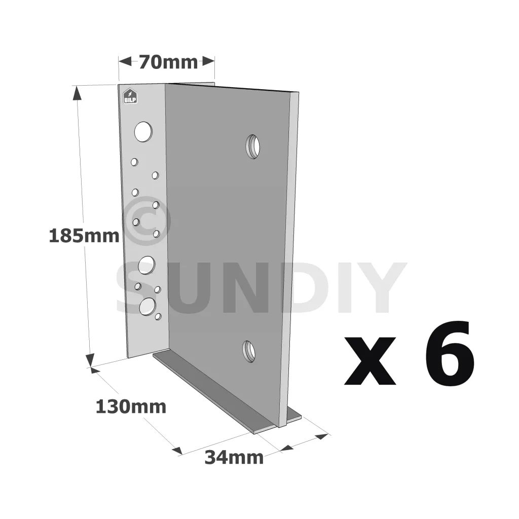 | Breite | Höhe | Pfostenbreite | Höhe | Tiefe | Breite (C) | Breite (D) | Dicke (t1) | Dicke (t2) | Ø13 | Ø5 | Ø13 | ||