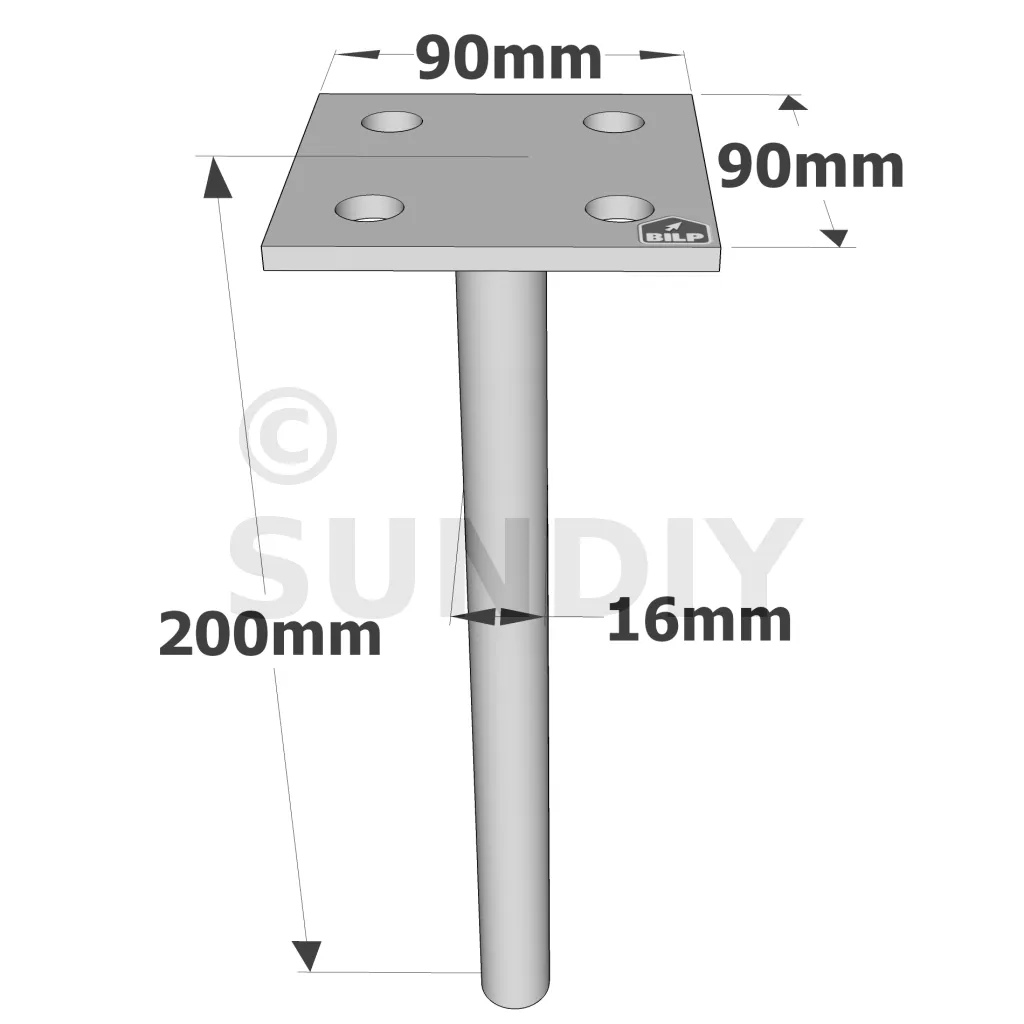 Pfostenträger zum Einbetonieren mit einzelner Platte - Réf. PPSP90