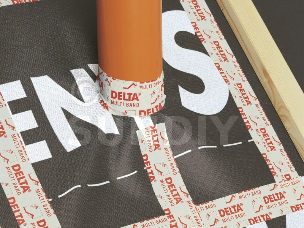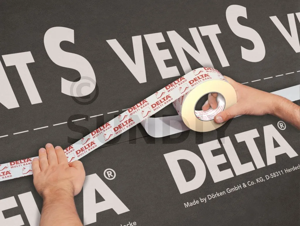 Zum Verkleben von Überlappungen und Enden von DELTA®-Sieben (Dachunterspannbahnen, Regensperren und Dampfsperren), zum Ausbessern kleinerer Schäden und zum Herstellen von Membrananschlüssen an einzelnen Punkten. DELTA®-MULTI-BAND M100, mit seiner doppelten