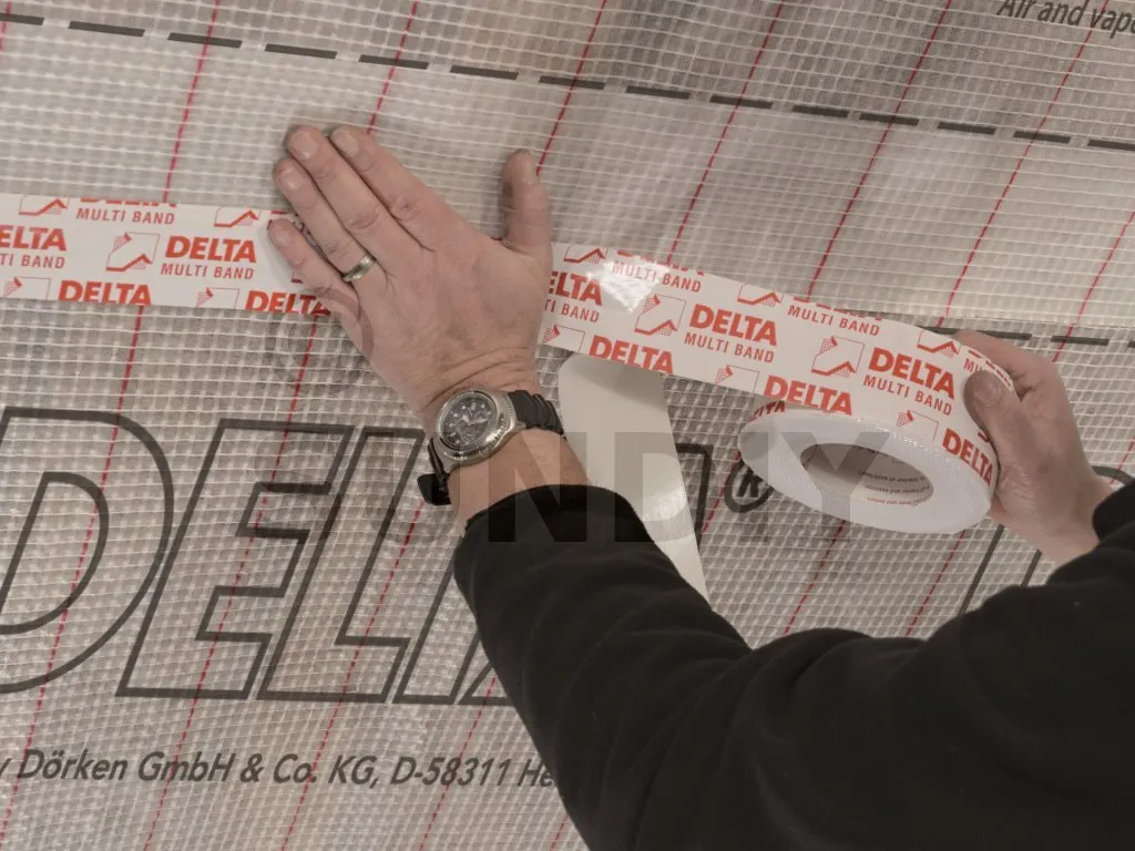 In Kombination mit DELTA®-Dampfsperren bildet sie die luftdichte Schicht auf der Innenseite.