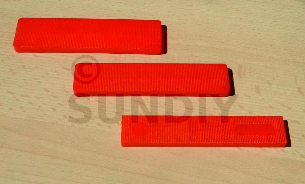 Flachkeil mit 6 mm dick, ideal für alle Layout- und Heimwerkerarbeiten. Widerstandsfähiges, korrosionsbeständiges Kunststoffmaterial. Rutschfester Streifen.