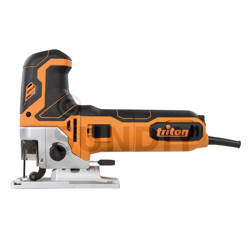 Kraftvoller 750-W-Motor mit dreistufigem Pendelhub und unglaublicher Schnittleistung. Horizontal- und Vertikalgriffe erlauben sowohl Druckausübung in der waagerechten als auch Geräteführung in der senkrechten Achse. Hubzahlkonstanthaltung unter Last für optimierte Motorkontrolle selbst unter starker Belastung. Voreinstellbare Hubzahlregelung von 800–2 900 Hüben/Min. Schnelle, werkzeuglose Sägeblattwechsel und Schnittwinkeleinstellungen (0° bis 45° nach rechts und links). Schnittleistung : 110 mm in Holz, 10 mm in Stahl und 25 mm in Aluminium. Drei Hochleistungsstichsägeblätter, Fußplattenschutz, Parallelführung, Triton-Führungsschienenadapter und Gerätetasche im Lieferumfang enthalten.