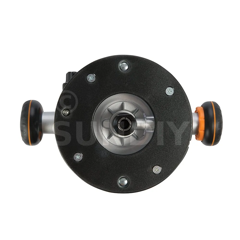 - Seitliche Lüftungsschlitze reduzieren das Ansaugen von Staub ins Motorgehäuse beim invertierten Einsatz am Oberfräsentisch.