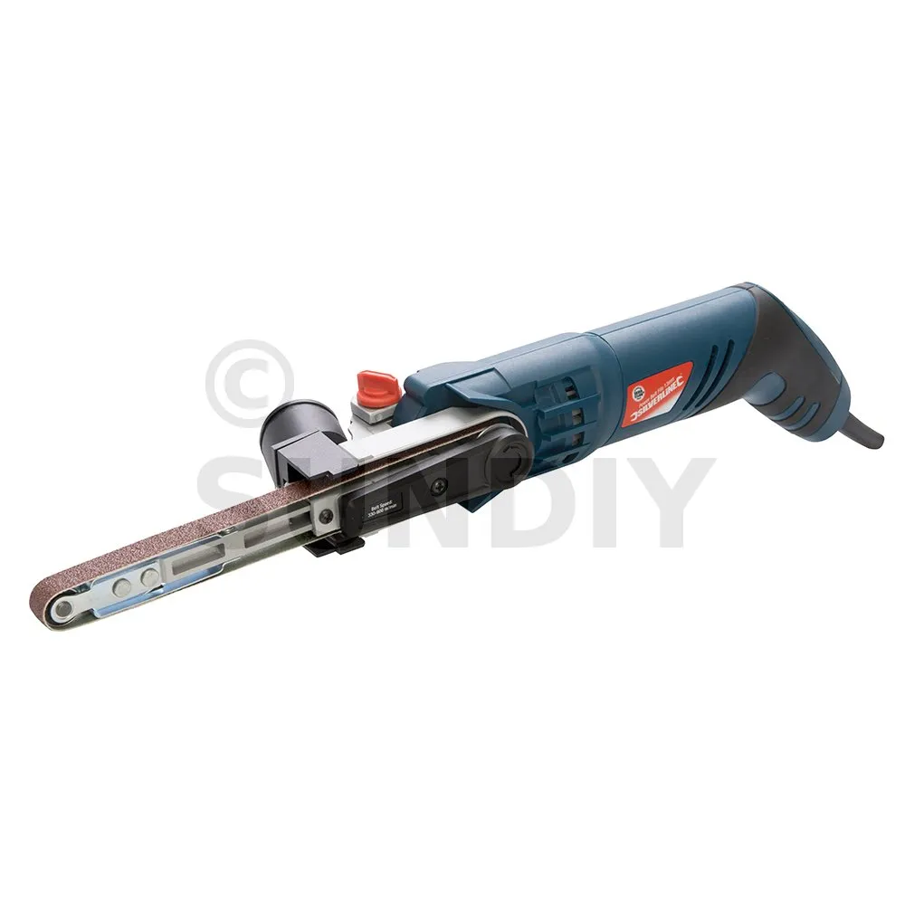 Die elektrische 13-mm-Bandfeile von Silverline eignet sich ideal zur Kalkentfernung, zum Abschleifen und Polieren von Schweißnähten, zum Anfertigen von Holzverbindungen sowie für Schleifarbeiten in schwierigen Ecken und an schwer erreichbaren Stellen. Zur Bearbeitung von Holz, Metall und Kunststoff konzipiert, verfügt der 130 mm lange Feilenarm über eine maximale Schleifbanddrehzahl von 550 m/Min. und lässt sich nach Bedarf auf den erforderlichen Arbeitswinkel verstellen.