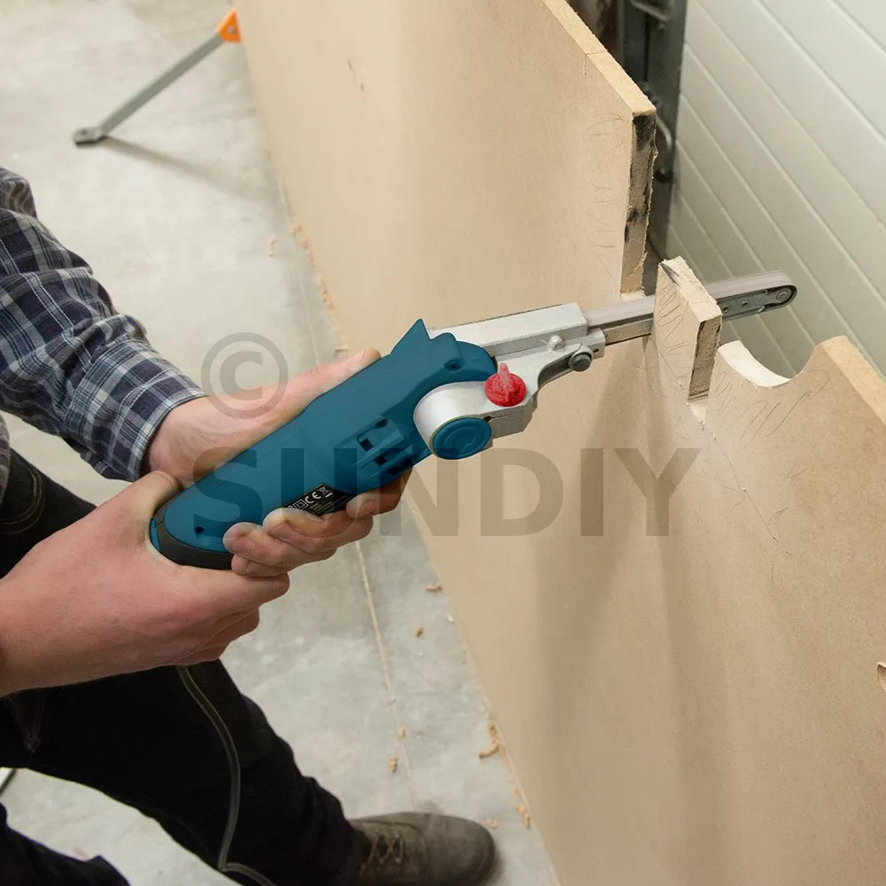 Ausgestattet mit verstellbarer Geschwindigkeitsregelung über eine leicht erreichbare Wählscheibe haben Sie die Möglichkeit, die Schleifbandumdrehung zu bestimmen und die Abtragsgeschwindigkeit und Oberflächengüte je nach der zu erledigenden Aufgabe und des zu bearbeitenden Materials zu ändern. Am Feilenarmfuß ist eine Spann- bzw. Löseschraube angebracht, mit der das Schleifband angezogen bzw. gelockert werden kann, um so die Leistung zu verbessern und Schleifbandwechsel zu erleichtern.