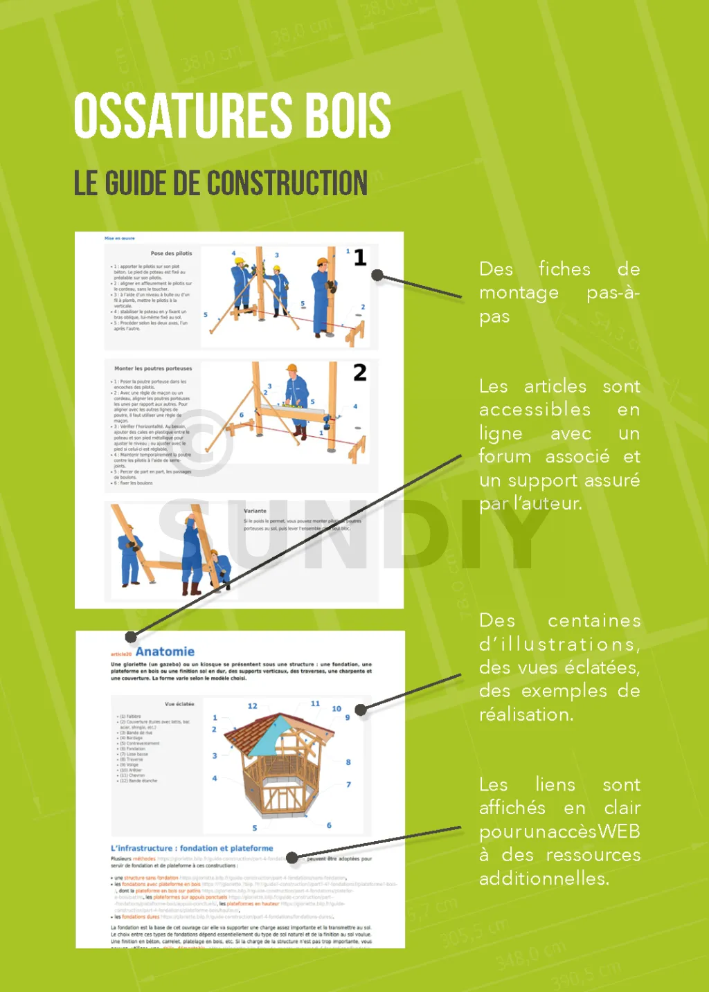 Um einen Unterstand zu bauen, der auf lange Zeit Bestand hat, muss eine gute bauliche Planung durchgeführt werden. Es gibt keinen Raum für Improvisation. Diese Anleitung ermöglicht es Ihnen, alle Konstruktionselemente (Schnitt, Spannweite, Baugruppen usw.) wie ein Profi zu bestimmen, jedoch mit einer Methode, die für alle zugänglich ist : Wandrahmen, Dach und Dachkonstruktion, Treppe, Außenwandverkleidung usw. Es werden zahlreiche Umsetzungstipps, Tricks und Tipps von Fachleuten verraten.