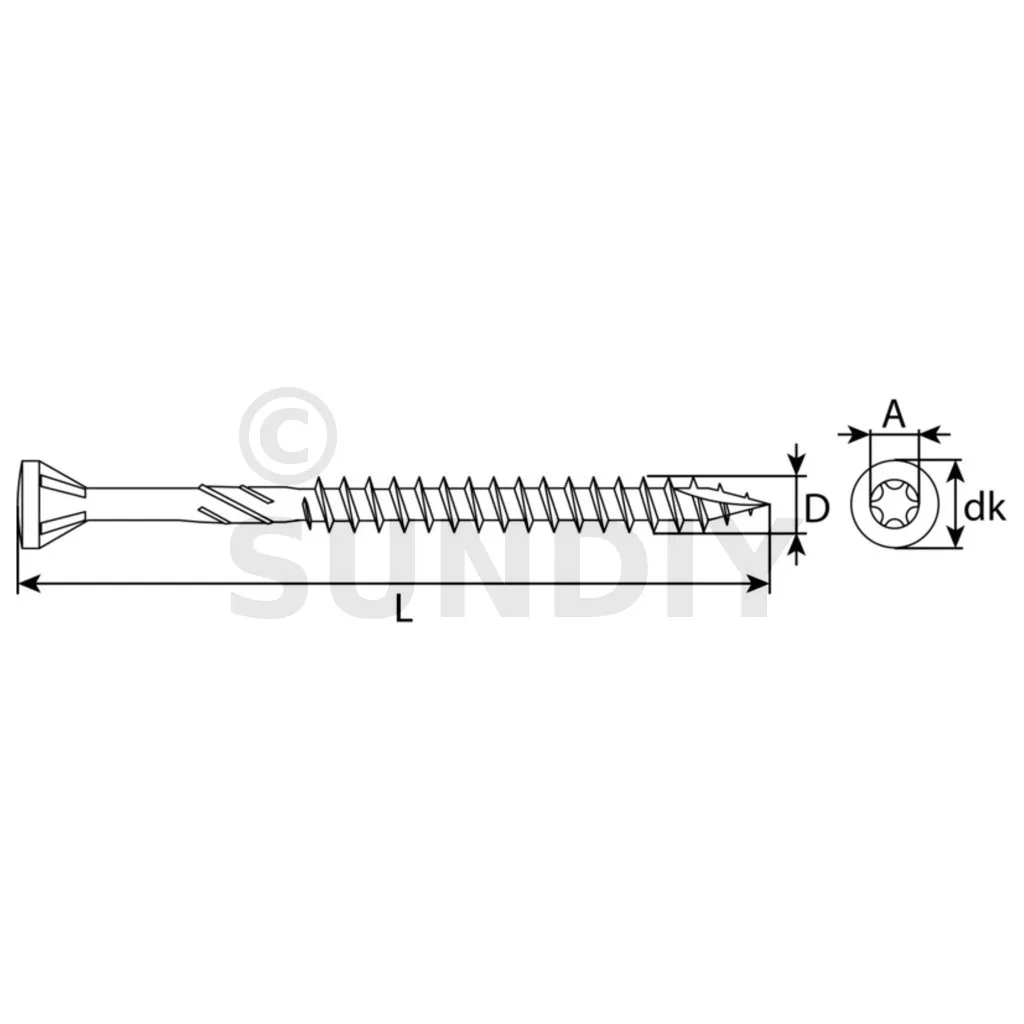 Schraube für Terrassendielen aus Holz, Senkkopf, Edelstahl A2