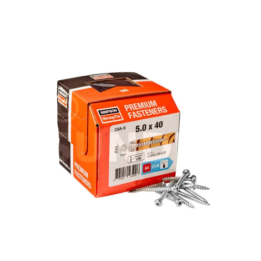 Die Torx-Kopfschraube aus Edelstahl ergänzt das verzinkte Sortiment. Es ist für korrosive Atmosphären geeignet und sollte nur mit Edelstahlverbindern verwendet werden.